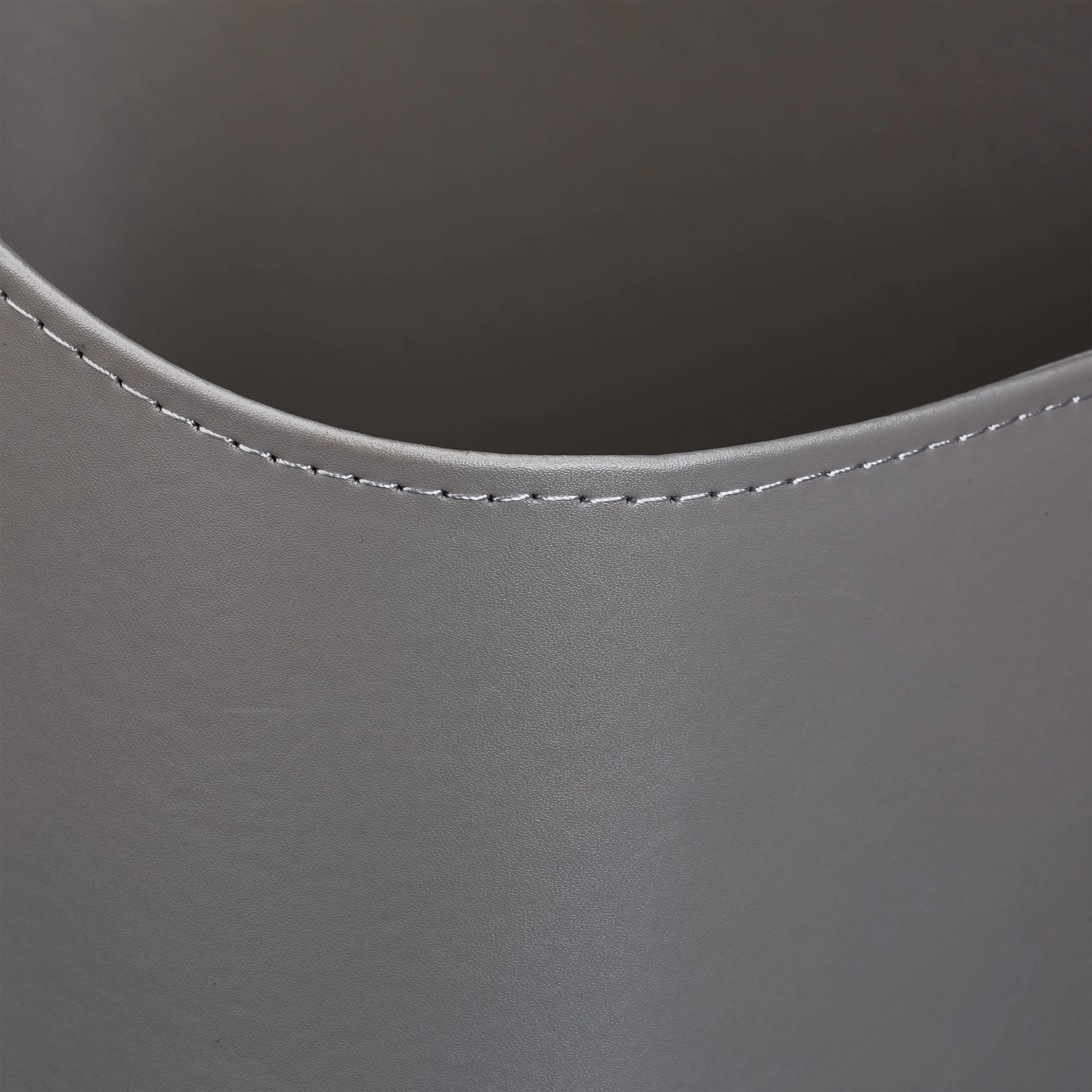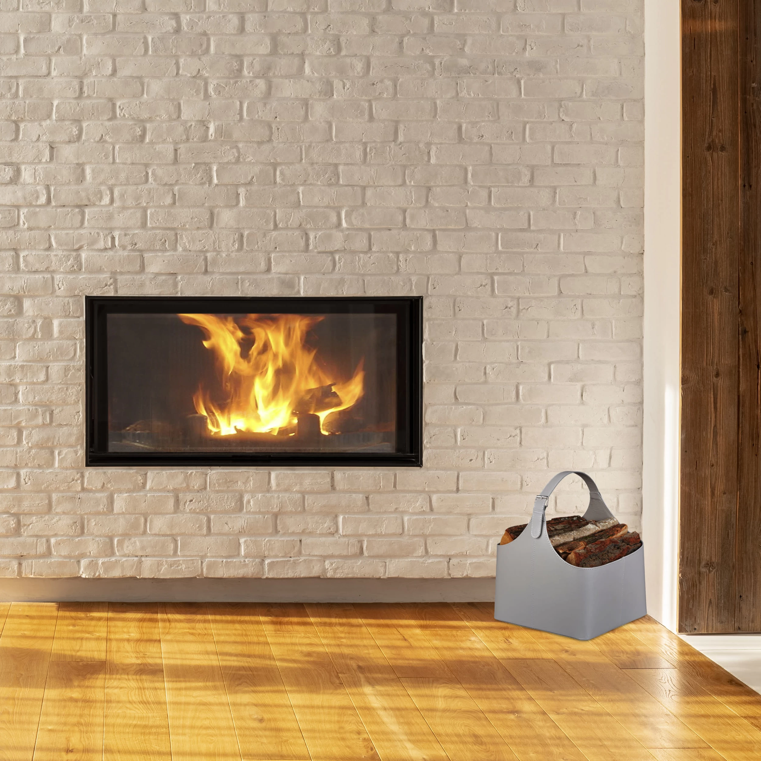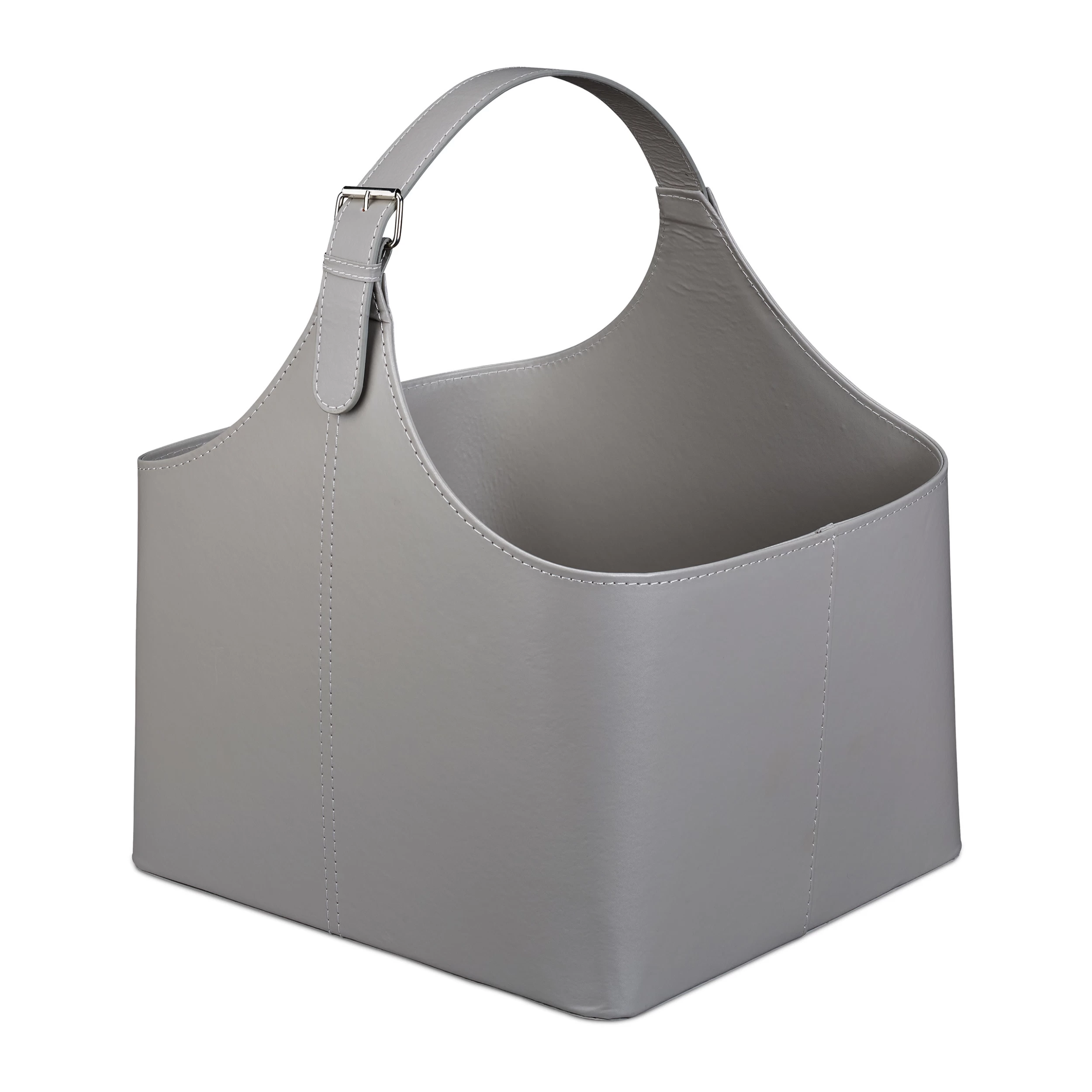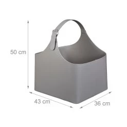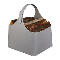 Dieser Holzkorb ist ein stylisches und zugleich praktisches Kaminzubehör für Ihr Wohnzimmer. Tragen Sie fertige Brennholzscheite oder Anzündhölzer mithilfe des Henkels bequem zum Ofen oder Kamin. Doch nicht nur zum Transport einer ausreichenden Menge Feuerholz ist der Kaminholzkorb geeignet. Die moderne Brennholztasche mit Kunstlederbezug in Dunkelgrau dient ebenso der dekorativen Aufbewahrung des Holzes. Nutzen Sie den Kaminkorb gerne universell für Zeitschriften, Spielzeug und vielem mehr.