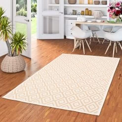 „Allrounder“ können Sie hier wörtlich nehmen! Dieser Teppich fügt sich nicht nur stilvoll in jeden Wohnbereich ein, sondern ist außerdem In- und Outdoor einsetzbar und setzt stilvolle Akzente in Natur Optik. Seine rustikale Sisaloptik passt „drinnen wie draußen“ und die erstklassige Kunstfaser hebt die Empfindlichkeit des Sisals auf und macht den Teppich robust und pflegeleicht. Das Material ist besonders strapazierfähig und hält sowohl Feuchtigkeit oder UV-Strahlung problemlos stand. Verschiedene Farben und Designs machen ihn an jedem Ort zu einem Hingucker! Das hochwertige Garn aus 100% Polypropylen ist schadstoffgeprüft. Die Herstellung der Valencia Teppiche findet in einem nach BSCI (Business Social Compliance Initiative) zertifiziertem Betrieb statt.