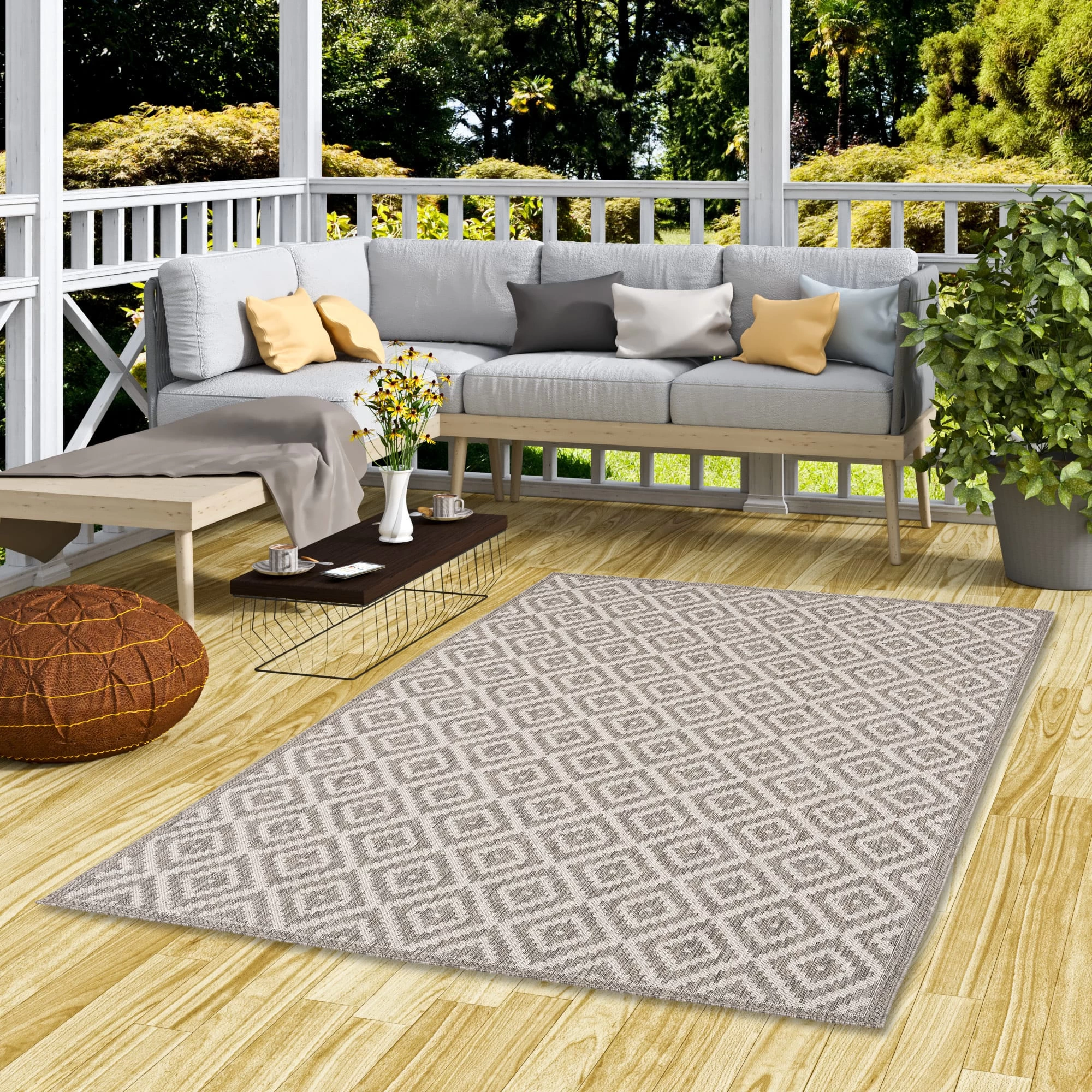 „Allrounder“ können Sie hier wörtlich nehmen! Dieser Teppich fügt sich nicht nur stilvoll in jeden Wohnbereich ein, sondern ist außerdem In- und Outdoor einsetzbar und setzt stilvolle Akzente in Natur Optik. Seine rustikale Sisaloptik passt „drinnen wie draußen“ und die erstklassige Kunstfaser hebt die Empfindlichkeit des Sisals auf und macht den Teppich robust und pflegeleicht. Das Material ist besonders strapazierfähig und hält sowohl Feuchtigkeit oder UV-Strahlung problemlos stand. Verschiedene Farben und Designs machen ihn an jedem Ort zu einem Hingucker! Das hochwertige Garn aus 100% Polypropylen ist schadstoffgeprüft. Die Herstellung der Valencia Teppiche findet in einem nach BSCI (Business Social Compliance Initiative) zertifiziertem Betrieb statt.