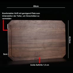 Das Izumi Ichiago Holzschneidebrett verfügt über eine großzügig bemessene 1,5 cm breite Saftrille. Diese hilft bei der Zubereitung entstehende Flüssigkeit aufzufangen.