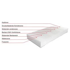Kaltschaummatratze MEDISAN PRO, Härtegrad 4. Die Kaltschaummatratze MEDISAN PRO bietet eine wunderbare Körperanpassung und eine angenehme Punktelastizität. Der 20cm hohe Kaltschaumkern ist auf beiden Seiten in 7 Komfortzonen eingeteilt. Die Zonen bieten dem ruhenden Körper jeweils unterschiedlich hohe Stützkraft an. Dadurch kann die Wirbelsäule ohne Kraftaufwand in einer ergonomisch korrekten Position lagern. Verspannungen und Muskelschmerzen werden so vermieden. Die Matratze ist insgesamt 22cm hoch. Der Bezug ist beidseitig mit 150g/m² Klimafaser versteppt und mit Aloe Vera behandelt. Durch einen Rundum – Reißverschluss ist der Bezug einfach abnehmbar und kann bis 60°C gewaschen werden. Wenn Sie eine echte Wohlfühlmatratze suchen, pflegeleicht und superkomfortabel. Hier ist sie.