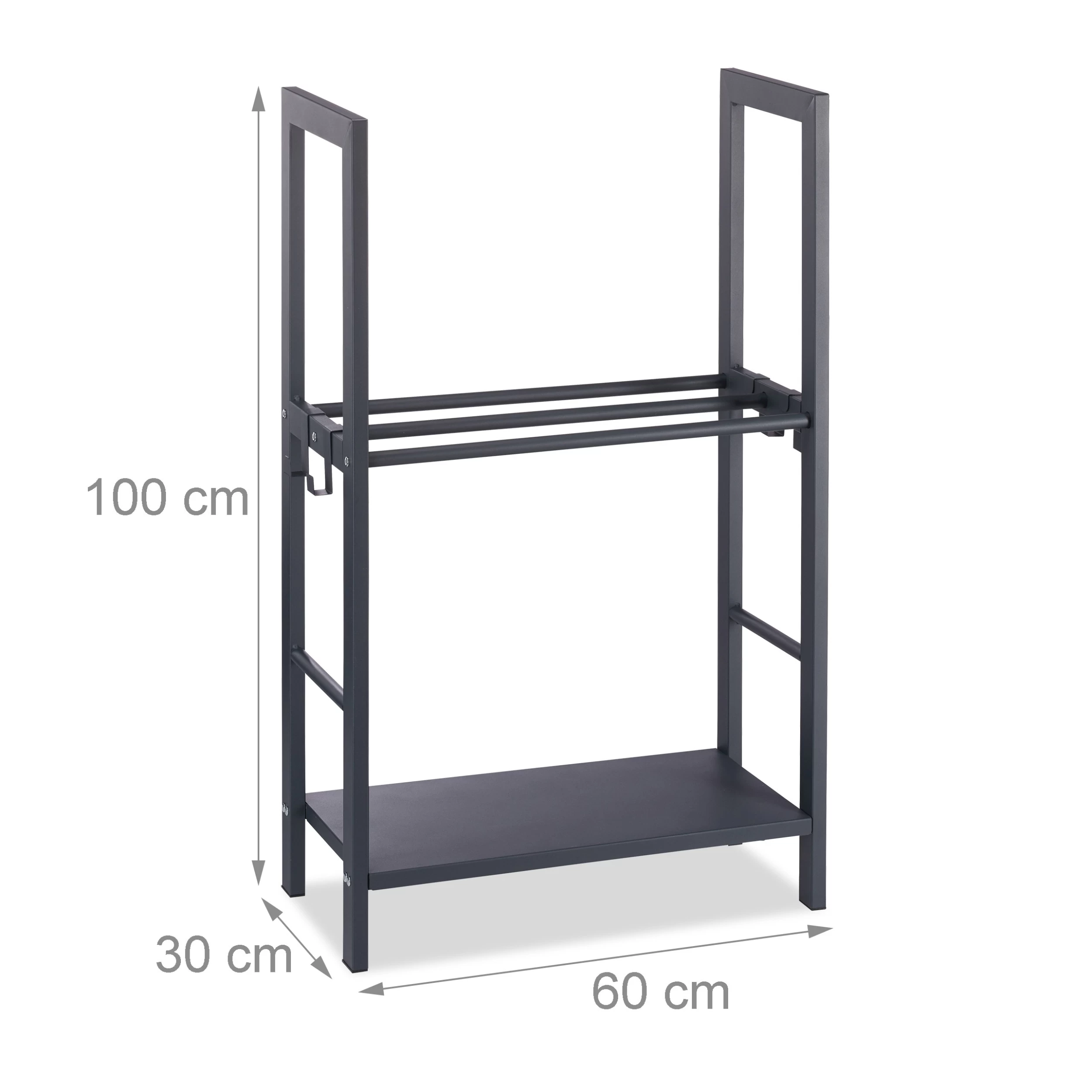 Das robuste Kaminregal aus Stahl ist die ideale Ergänzung Ihres Kaminzubehörs. Platzieren Sie den Feuerholzhalter als dekoratives Einrichtungselement neben Ofen oder Kamin oder stellen Sie ihn in Garage oder Keller ab. Auf 2 Ablagen können Sie Holzscheite stapeln und haben sie schnell zur Hand, um das Feuer am Lodern zu halten. Auch draußen kann die Kaminholzablage in geschützten Ecken aufgestellt werden. Praktisch sind die vier variabel ansteckbaren Haken, an denen Sie Ihr Kaminbesteck griffbereit aufhängen können. Das Ofenholzregal ist in verschiedenen Größen erhältlich.