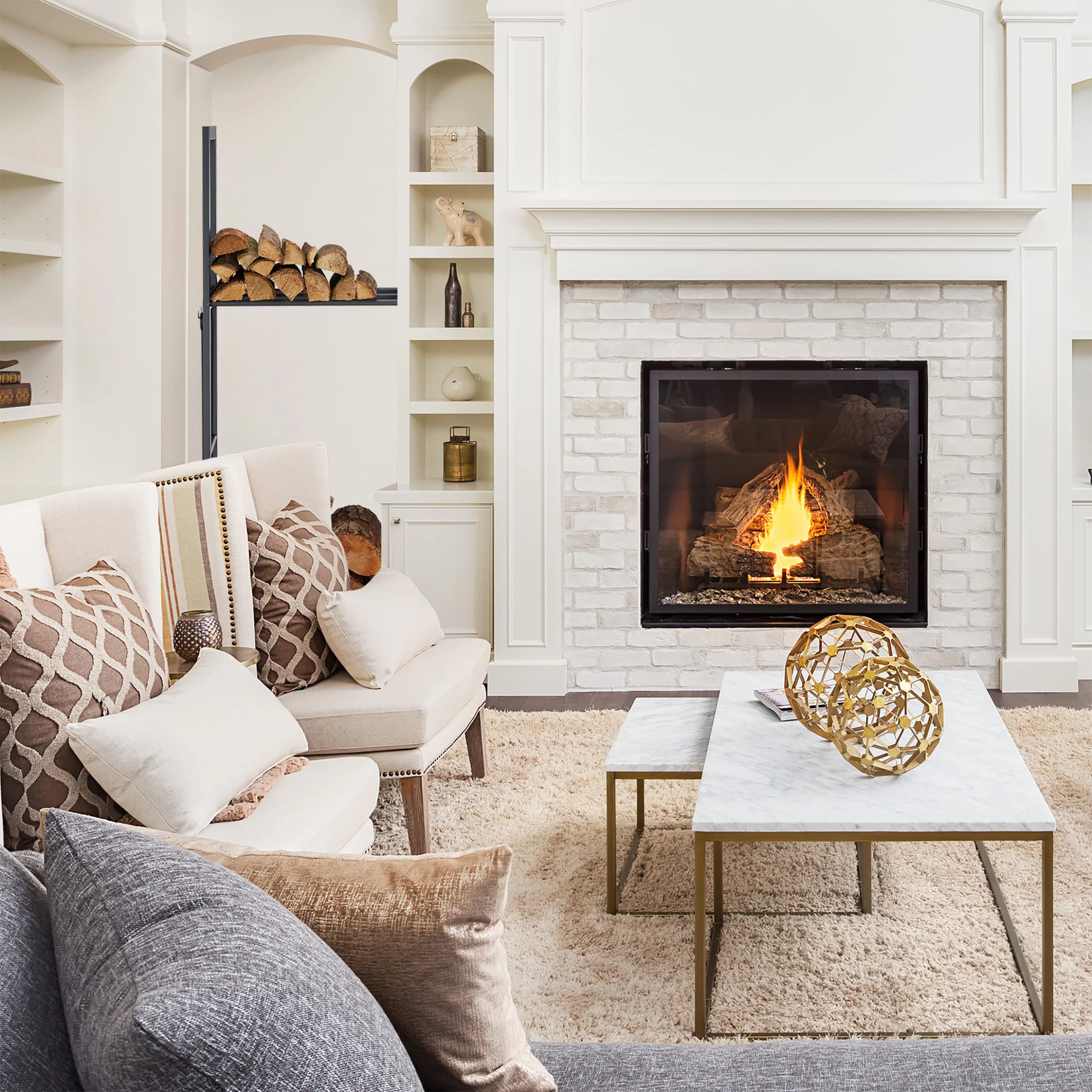 – Dekoartikel und Kaminholzbesteck sind im Lieferumfang nicht enthalten