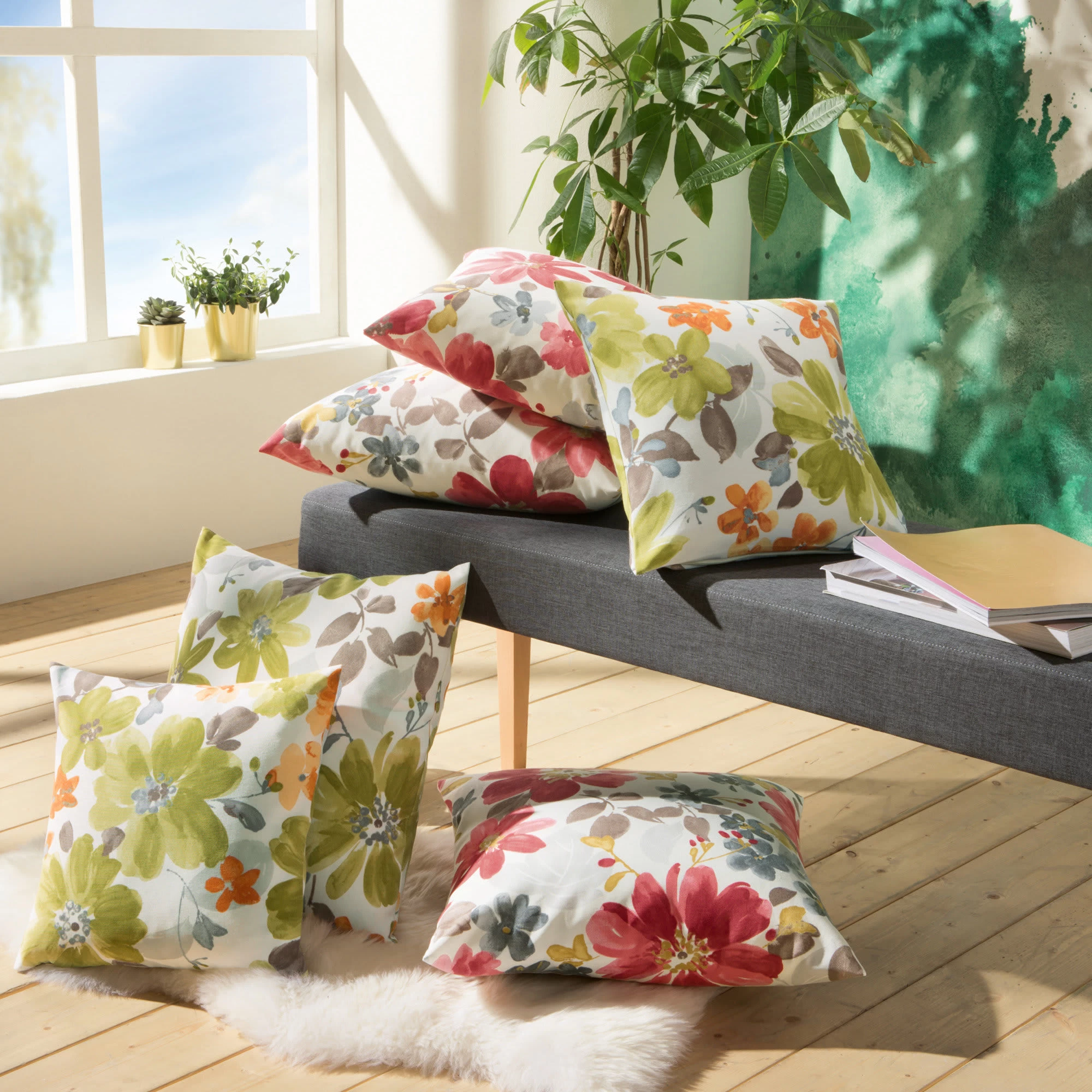 Erwin Müller Kissenhülle. Wie gemalt wirken die fantasievollen Blumen. Sie kommen auf dem hellen Fond farbenprächtig zum Ausdruck. So verleihen Sie Ihrem Wohnambiente ein hinreißendes, fröhliches Aussehen. Mit praktischem Reißverschluss. Robustes Gewebe, das durch seine Langlebigkeit und die hohe Strapazierfähigkeit überzeugt.