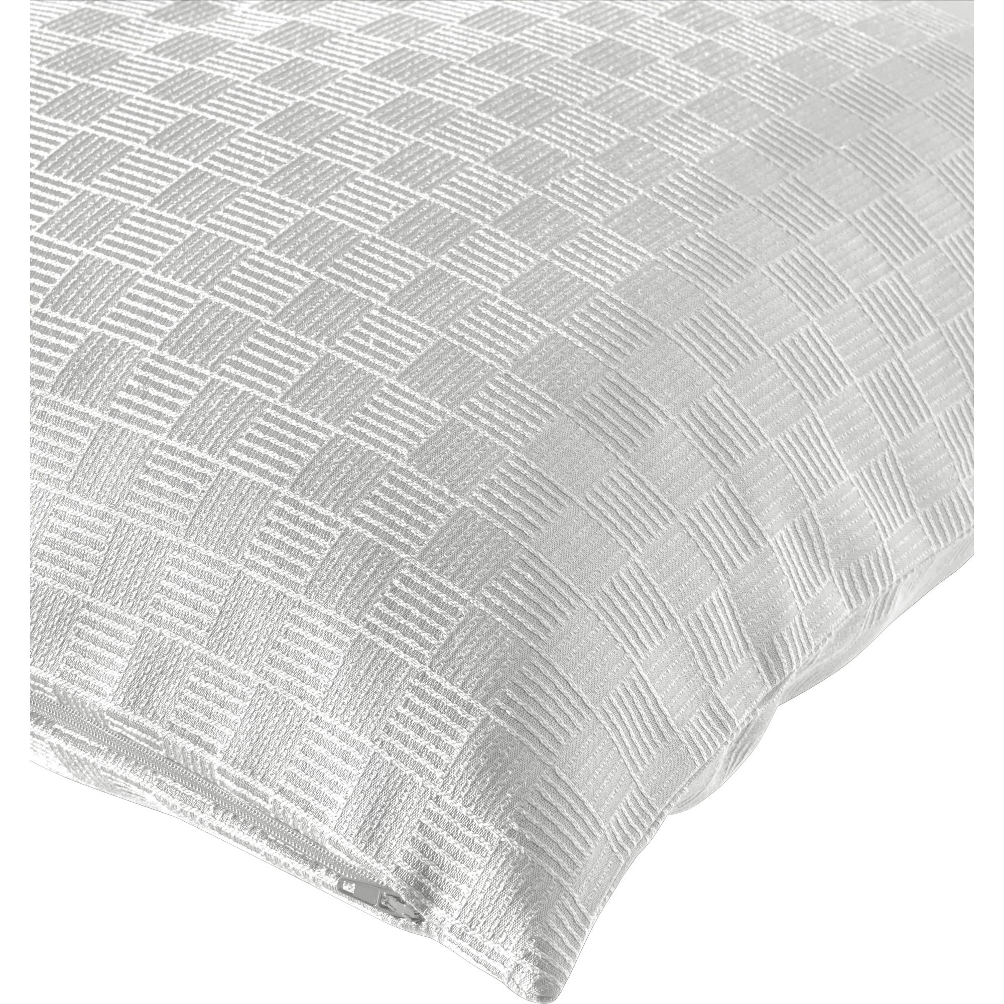Erwin Müller Jacquard Kissenhülle „Paderborn“. Elegant, zeitlos und durch die eingewebte Karo-Struktur besonders ausdrucksstark – für viele Anlässe. Die Fleckschutzveredelung macht den Stoff schmutzunempfindlich und leicht zu reinigen. Flüssigkeiten dringen nicht in das Gewebe ein, sondern perlen einfach ab und können mit einem Küchenkrepp aufgenommen werden. Das Bügeln nach der Wäsche auf der Rückseite frischt die Ausrüstung wieder auf. Mit praktischem Reißverschluss ausgestattet.
