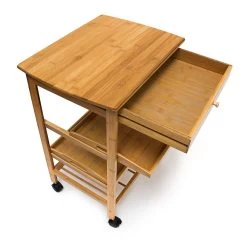 Die Servierwagen der JAMES Reihe bestechen durch ihre robuste Bauweise und das praktische Design. Mit diesen Helfern können Sie Geschirr, Flaschen, ganze Gerichte und vieles mehr bequem und unkompliziert transportieren. Auch als Beistelltisch sind die Rollwagen ideal geeignet. Der verwendete Bambus sieht dabei stets toll aus und ist zugleich äußerst robust.