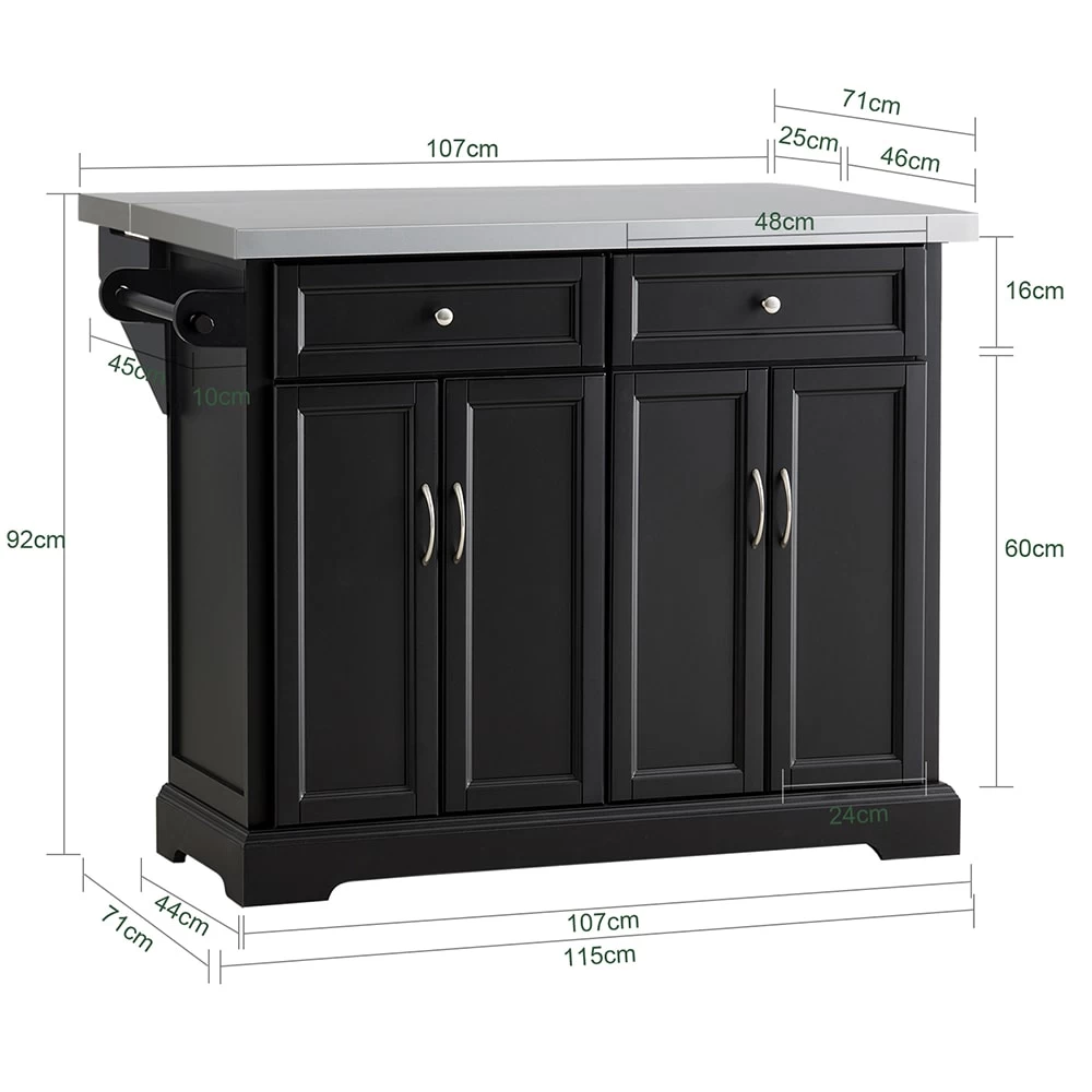 Die Arbeitsfläche aus Edelstahl bietet viel Platz zum Ablegen und zur Zubereitung von Lebensmitteln. Diese lässt sich leicht reinigen und trägt zum hochwertigen Aussehen bei.