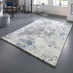 Ein paar Farbspritzer gefällig? Der extravagante ELLE Decoration Teppich Fontaine in Creme Grau Blau beeindruckt durch einen farblich abgestimmten Paint-Splash-Effekt als Muster. Verwandeln Sie Ihr Wohnzimmer in ein Kunstatelier!