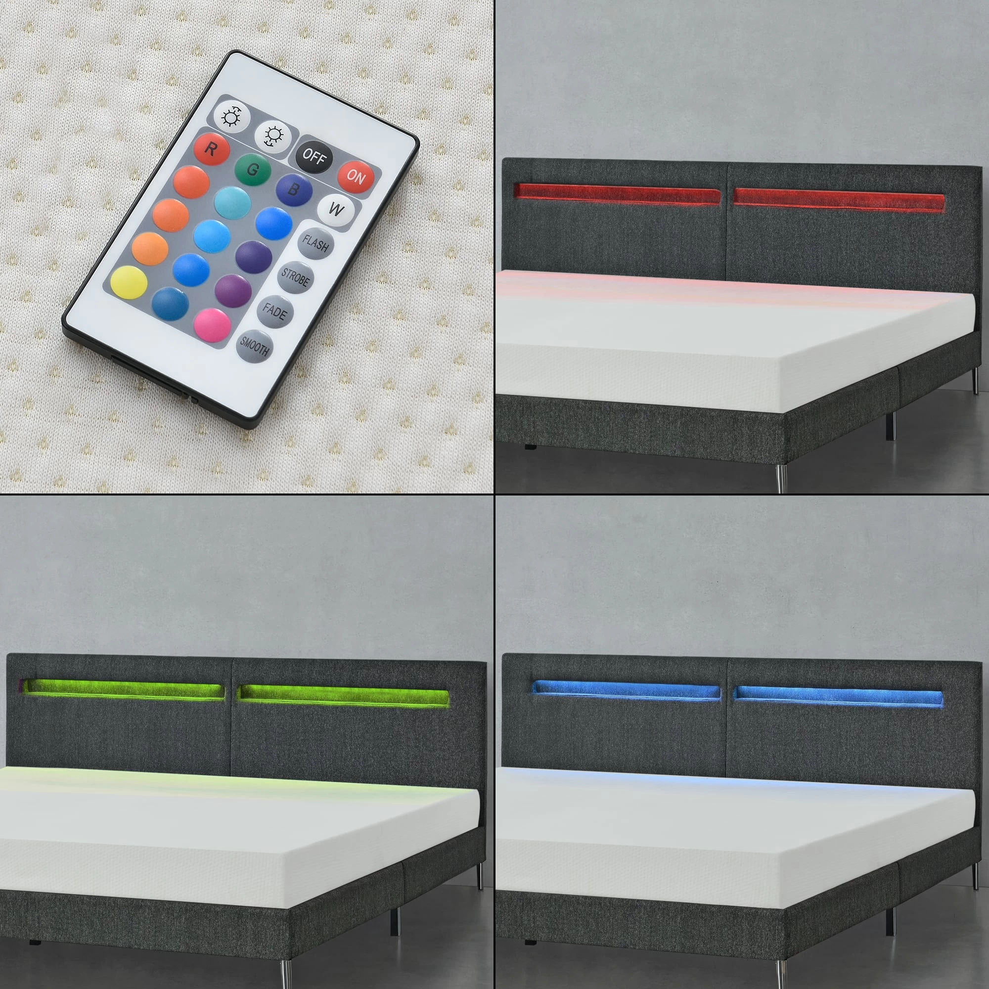 Das stilvolle und zeitlose Polsterbett ist pflegeleicht und bietet einen angenehmen Komfort. Außerdem verleiht die dekorative LED Beleuchtung diesem Bett einen besonderen Charme.