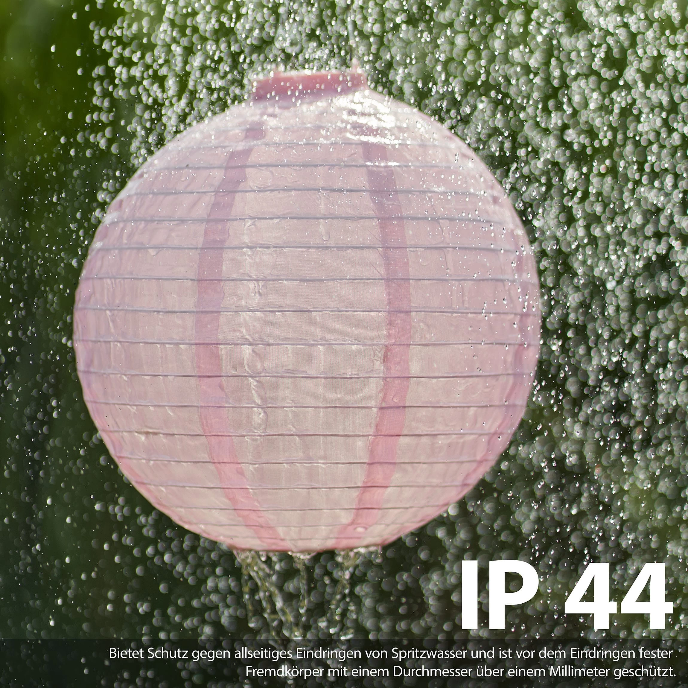 – Durch das eingesetzte Nylon und die IP44 geschützte LED sind die Lampions bestens für den Einsatz im Freien geeignet.