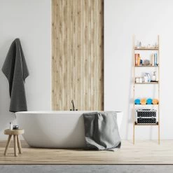 Dieses Leiterregal bietet Ihnen eine dekorative Lösung zur Aufbewahrung von Büchern, Badartikeln, Deko und vielem mehr. Mit seiner modernen Optik fügt sich das 5-stufige Wandlehnregal dabei gut in seine Umgebung ein und macht als Standregal in der Küche ebenso eine gute Figur wie als Dekoregal im Wohnzimmer oder Bücherregal im Arbeitszimmer. Der natürliche Bambus eignet sich auch besonders gut für feuchte Raume, sodass das Regal ohne Probleme als Badregal genutzt werden kann.