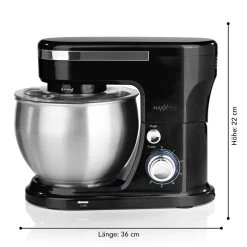 – Lieferumfang: 1 x Motoreinheit, 1 x Rührschüssel (5l), 1 x Rühraufsatz, 1 x Knethaken, 1 x Schneebesen, 1 x Spritzschutz mit Einfüllöffnung