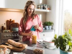 In der 3-lagigen Aufschnittdose Omnia kannst Du perfekt Fleischwaren Deiner Wahl aufbewahren und frischhalten. Ob Schinken oder Aufschnitt zum Frühstück oder ein Stück Streichwurst – in dieser Kühlschrankdose bleibt alles lange frisch. Die einzelnen Behälter der Dose lassen sich platzsparend übereinander stapeln. Der Deckel verschließt schließt den oberen Behälter luft- und aromadicht ab. Die beiden unteren Behälter werden durch das jeweils darüberliegende Element abgedeckt Auch bei verschiedenen Wurst-oder Aufschnittsorten hast Du so immer eine kompakte und handliche Aufbewahrungsdose. Aber bekanntlich isst ja das Auge auch mit, daher hat die hier abgebildete Aufschnittdose einen farbigen Deckel und wird dadurch noch attraktiver. Der kompakte Deckel ist übrigens aus einem Stück gefertigt, das heißt zwischen Deckel und Dichtung können sich keine Ablagerungen ansammeln. Der Deckel und die Aufbewahrungsbehälter sind spülmaschinengeeignet.