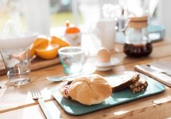 Frühstücksbrettchen in Farbe. Die Alternative für den normalen Frühstücksteller. Mal schnell auf der Anrichte Butterbrote schmieren oder ein Stück Kuchen abschneiden? Dieses farbige Frühstücksbrettchen von Mepal ist nicht nur hübsch, sondern vor allem praktisch. Die rutschfeste Unterseite sorgt dafür, dass das Brettchen beim Schmieren, Schneiden und Servieren nicht wegrutschen kann. Praktisch!