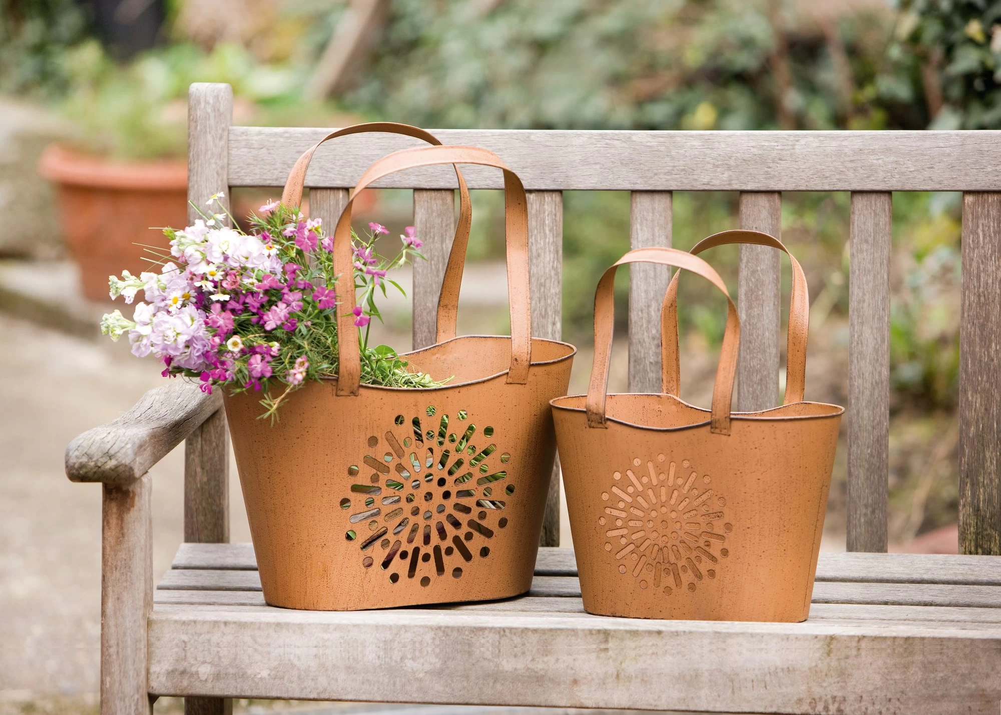schöne Rostoptik mit Ausstanzungen, als Übertopf oder Windlicht verwendbar