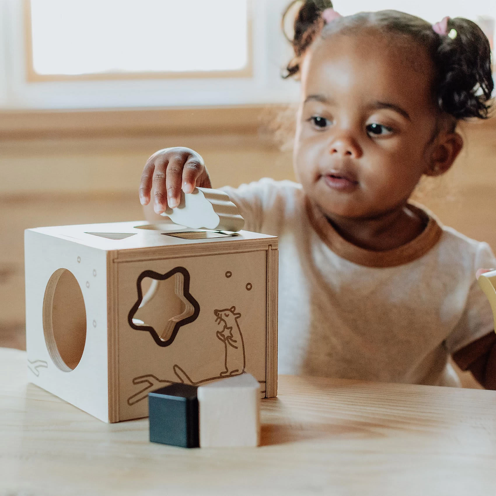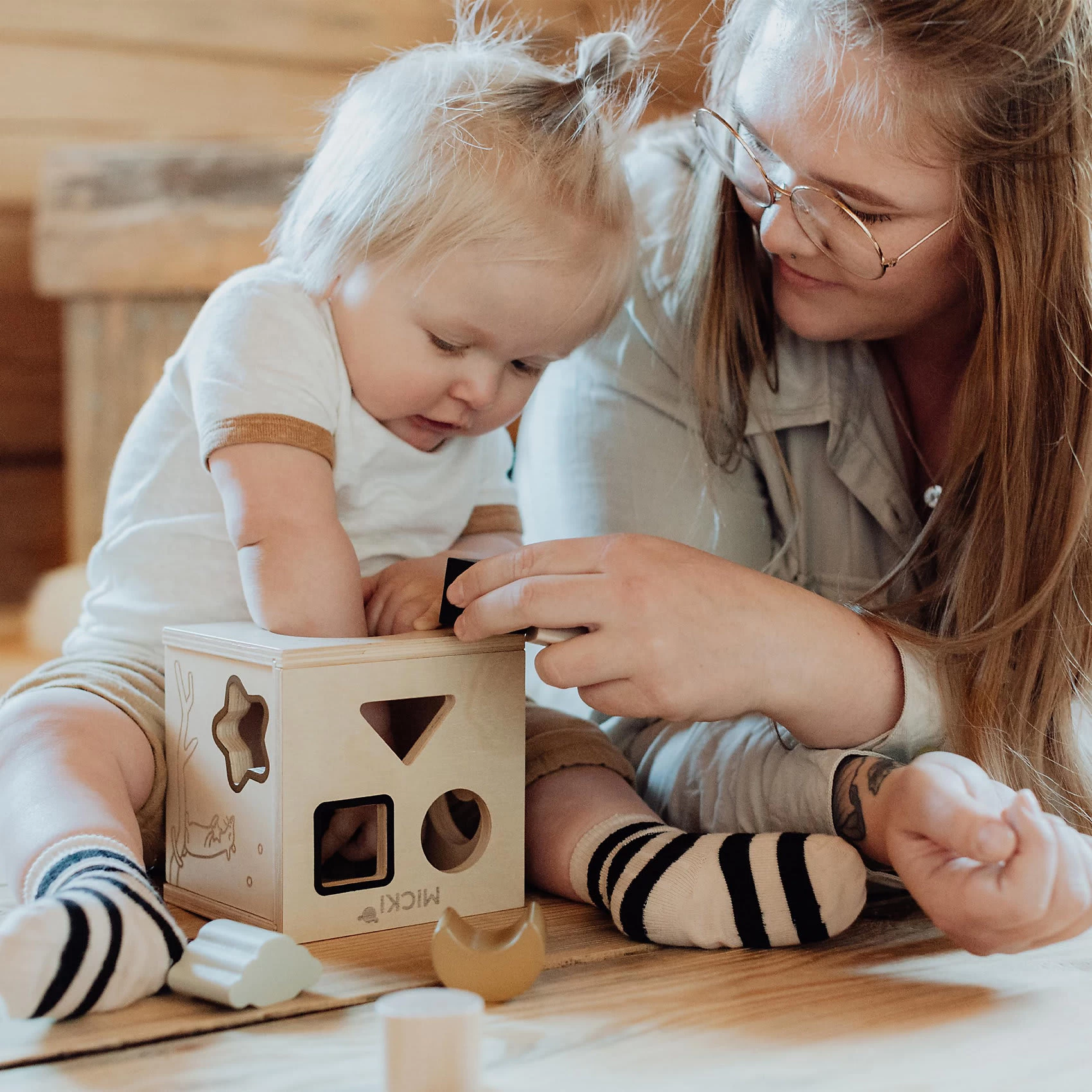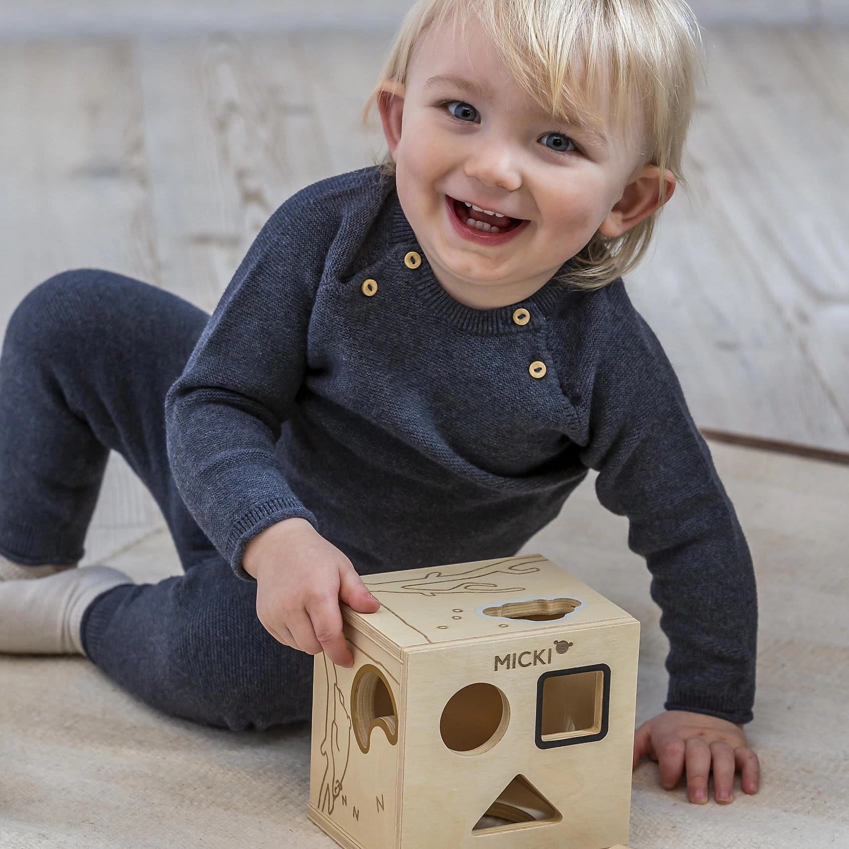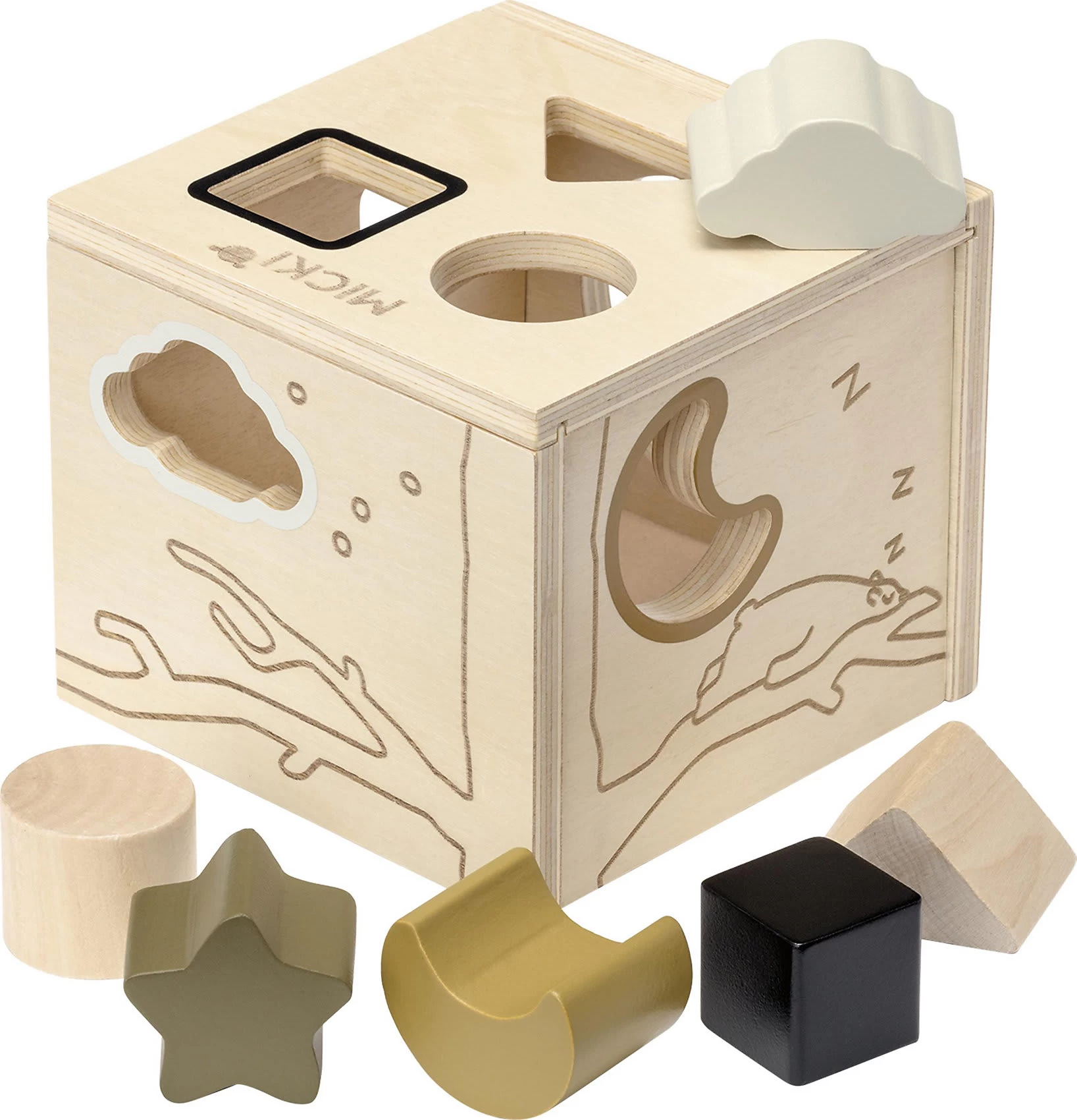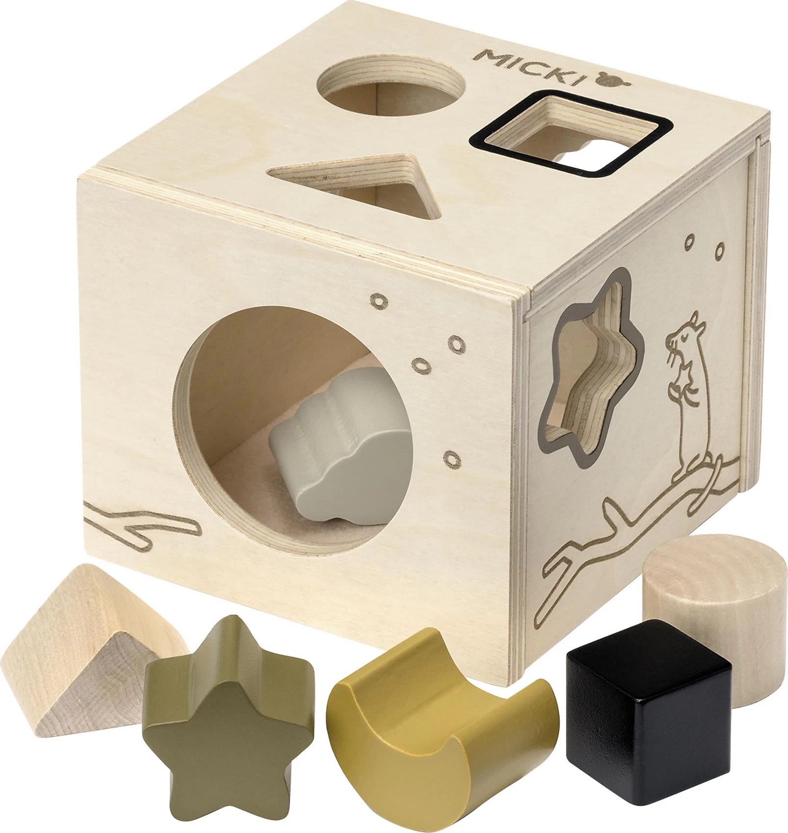 Mit dieser tollen Sortierbox von Micki lernen Kinder spielerisch verschiedene Formen zu erkennen und unterscheiden. So haben sie Spaß am Spielen und lernen zugleich jede Menge dazu. Die eingravierten Motive sehen nicht nur toll aus, sondern laden ebenfalls zum Fühlen ein.