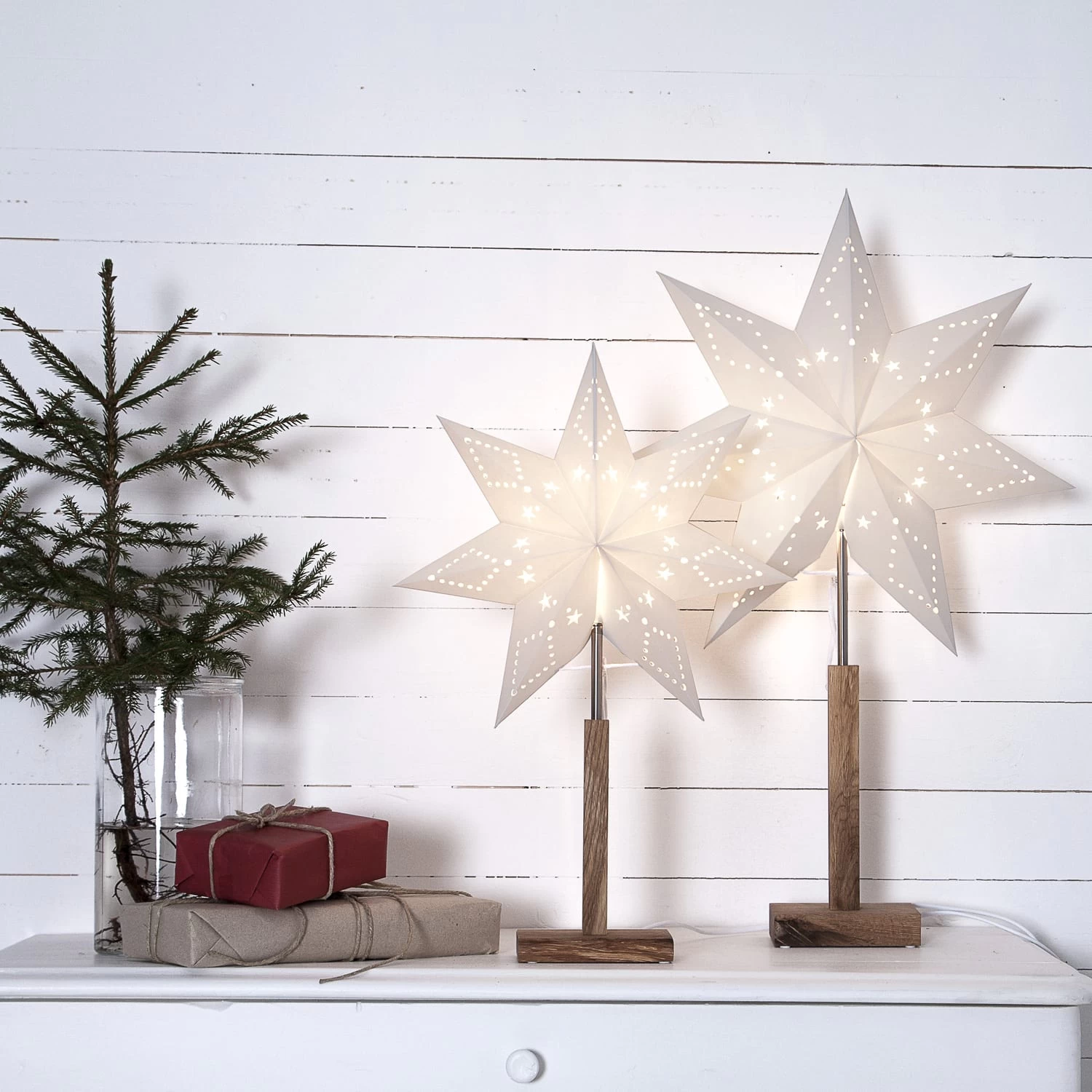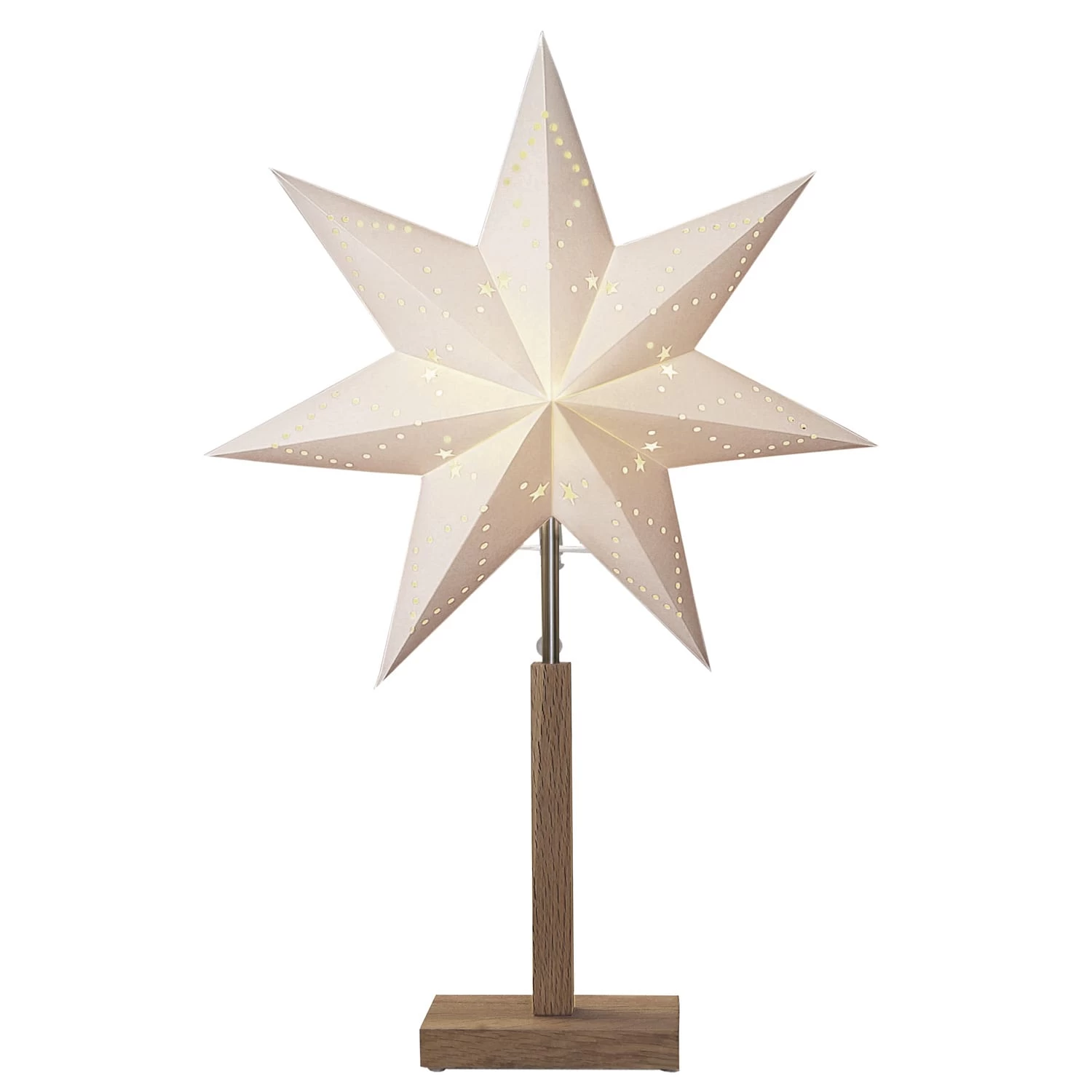 Papierstern LISA – stehend – 7-zackig – D: 34cm, H: 55cm – inkl. E14 Fassung u. Kabel – weiß/braun Der klassische Papierstern auf Holzständer ist eine herrliche Dekoration für die Fensterbank oder das Bücherregal. Der weihnachtliche Stern ist aufwändig gefaltet. Durch die kleinen Löcher und ausgestanzten Sternchen funkelt das Licht heraus und gibt dem Dekostern einen besonders schönen Look.