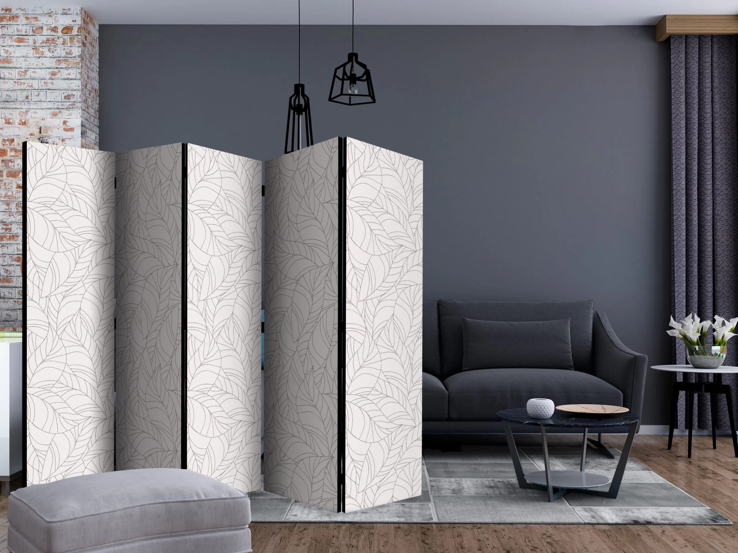 Dekoratives Paravent „Colourless Leaves II [Room Dividers]“ ist ein besonderes Schmuckstück für die modernen Inneräume. 5-teilig, hergestellt aus Holz und beidseitig bedrucktes Paravent teilt nicht nur diskret den Raum sonder kreiert auch in dem Raum ein fabelhaftes Arrangement. Perfekte Herstellung sowie originelle Motive in der Full HD Druckqualität verursachen, dass die Zimmerparavents jedem Raum einen einmaligen Charme verleihen. Die dekorativen Paravents für die Wohnung, dass ist mit Sicherheit eine originelle Idee für die Dekoration des Innenraumes. Es lohnt sich ihre praktische Anwendung zu erwähnen – die Zimmerparavents kann man z.B. zwecks der Kachierung des Wäschetrockners nutzen. Das Paravent ist eine sehr originelle Dekoration von Räumen, die man nutzen kann, sowohl in der Wohnung wie auch in einem Atelier z.B. im Friseursalon, Arztpraxis oder im Buchhaltungsbüro. Dekoratives Paravent bewährt sich ideal als:Als Zimmerparavent und ein dekoratives Möbelstück, dass den großen Salon vom Speisezimmer und Küche trenntIn einer Ein-Zimmer-Wohnung, in dem es den Tagesraum vom Schlafzimmer trenntAls Paravent für das Schlafzimmer, in dem es z.B. die Kleingarderobe heraustrenntIn Boutiquen und Kosmetiksalons, als orignelles Arrangement und Umkleideraum in Einem!Im gemeinsamen Geschwisterzimmer, als diskrete Trennwand für den RaumIn grossen Wohnungen und Lofts Technische Daten: