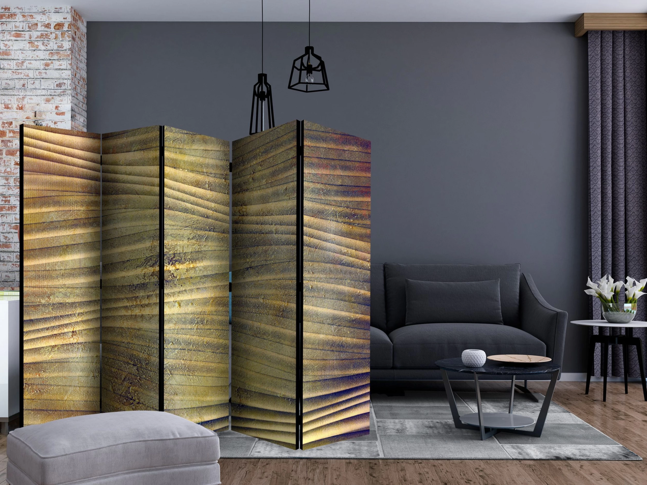 Dekoratives Paravent „Dream on Sahara II [Room Dividers]“ ist ein besonderes Schmuckstück für die modernen Inneräume. 5-teilig, hergestellt aus Holz und beidseitig bedrucktes Paravent teilt nicht nur diskret den Raum sonder kreiert auch in dem Raum ein fabelhaftes Arrangement. Perfekte Herstellung sowie originelle Motive in der Full HD Druckqualität verursachen, dass die Zimmerparavents jedem Raum einen einmaligen Charme verleihen. Die dekorativen Paravents für die Wohnung, dass ist mit Sicherheit eine originelle Idee für die Dekoration des Innenraumes. Es lohnt sich ihre praktische Anwendung zu erwähnen – die Zimmerparavents kann man z.B. zwecks der Kachierung des Wäschetrockners nutzen. Das Paravent ist eine sehr originelle Dekoration von Räumen, die man nutzen kann, sowohl in der Wohnung wie auch in einem Atelier z.B. im Friseursalon, Arztpraxis oder im Buchhaltungsbüro. Dekoratives Paravent bewährt sich ideal als:Als Zimmerparavent und ein dekoratives Möbelstück, dass den großen Salon vom Speisezimmer und Küche trenntIn einer Ein-Zimmer-Wohnung, in dem es den Tagesraum vom Schlafzimmer trenntAls Paravent für das Schlafzimmer, in dem es z.B. die Kleingarderobe heraustrenntIn Boutiquen und Kosmetiksalons, als orignelles Arrangement und Umkleideraum in Einem!Im gemeinsamen Geschwisterzimmer, als diskrete Trennwand für den RaumIn grossen Wohnungen und Lofts Technische Daten: