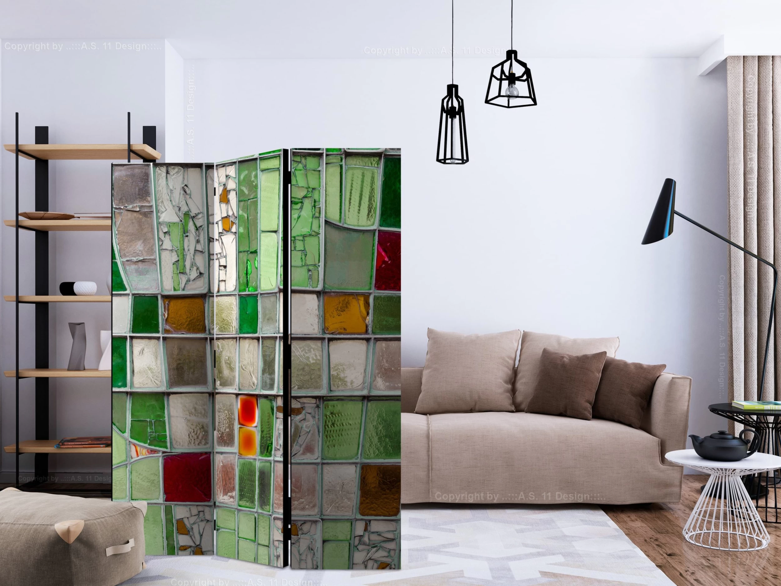Dekoratives Paravent „Emerald Stained Glass [Room Dividers]“ ist ein besonderes Schmuckstück für die modernen Inneräume. 3-teilig, hergestellt aus Holz und beidseitig bedrucktes Paravent teilt nicht nur diskret den Raum sonder kreiert auch in dem Raum ein fabelhaftes Arrangement. Perfekte Herstellung sowie originelle Motive in der Full HD Druckqualität verursachen, dass die Zimmerparavents jedem Raum einen einmaligen Charme verleihen. Die dekorativen Paravents für die Wohnung, dass ist mit Sicherheit eine originelle Idee für die Dekoration des Innenraumes. Es lohnt sich ihre praktische Anwendung zu erwähnen – die Zimmerparavents kann man z.B. zwecks der Kachierung des Wäschetrockners nutzen. Das Paravent ist eine sehr originelle Dekoration von Räumen, die man nutzen kann, sowohl in der Wohnung wie auch in einem Atelier z.B. im Friseursalon, Arztpraxis oder im Buchhaltungsbüro. Dekoratives Paravent bewährt sich ideal als:Als Zimmerparavent und ein dekoratives Möbelstück, dass den großen Salon vom Speisezimmer und Küche trenntIn einer Ein-Zimmer-Wohnung, in dem es den Tagesraum vom Schlafzimmer trenntAls Paravent für das Schlafzimmer, in dem es z.B. die Kleingarderobe heraustrenntIn Boutiquen und Kosmetiksalons, als orignelles Arrangement und Umkleideraum in Einem!Im gemeinsamen Geschwisterzimmer, als diskrete Trennwand für den RaumIn grossen Wohnungen und Lofts Technische Daten: