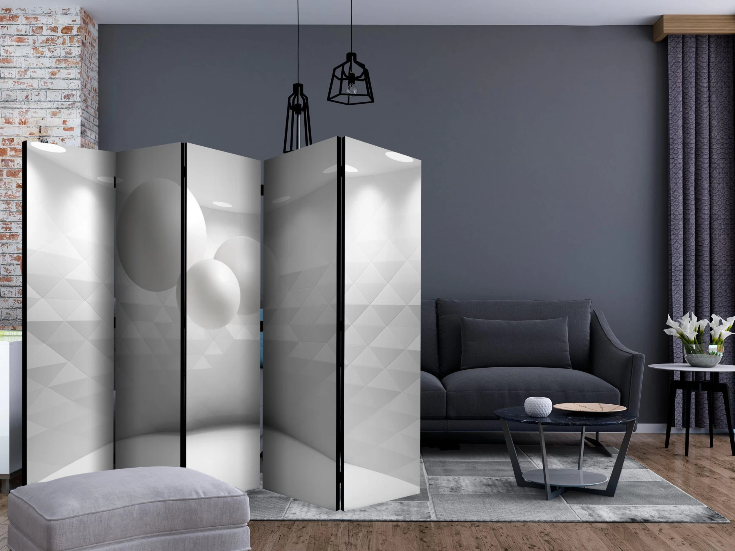 Dekoratives Paravent „Geometric Room II [Room Dividers]“ ist ein besonderes Schmuckstück für die modernen Inneräume. 5-teilig, hergestellt aus Holz und beidseitig bedrucktes Paravent teilt nicht nur diskret den Raum sonder kreiert auch in dem Raum ein fabelhaftes Arrangement. Perfekte Herstellung sowie originelle Motive in der Full HD Druckqualität verursachen, dass die Zimmerparavents jedem Raum einen einmaligen Charme verleihen. Die dekorativen Paravents für die Wohnung, dass ist mit Sicherheit eine originelle Idee für die Dekoration des Innenraumes. Es lohnt sich ihre praktische Anwendung zu erwähnen – die Zimmerparavents kann man z.B. zwecks der Kachierung des Wäschetrockners nutzen. Das Paravent ist eine sehr originelle Dekoration von Räumen, die man nutzen kann, sowohl in der Wohnung wie auch in einem Atelier z.B. im Friseursalon, Arztpraxis oder im Buchhaltungsbüro. Dekoratives Paravent bewährt sich ideal als:Als Zimmerparavent und ein dekoratives Möbelstück, dass den großen Salon vom Speisezimmer und Küche trenntIn einer Ein-Zimmer-Wohnung, in dem es den Tagesraum vom Schlafzimmer trenntAls Paravent für das Schlafzimmer, in dem es z.B. die Kleingarderobe heraustrenntIn Boutiquen und Kosmetiksalons, als orignelles Arrangement und Umkleideraum in Einem!Im gemeinsamen Geschwisterzimmer, als diskrete Trennwand für den RaumIn grossen Wohnungen und Lofts Technische Daten: