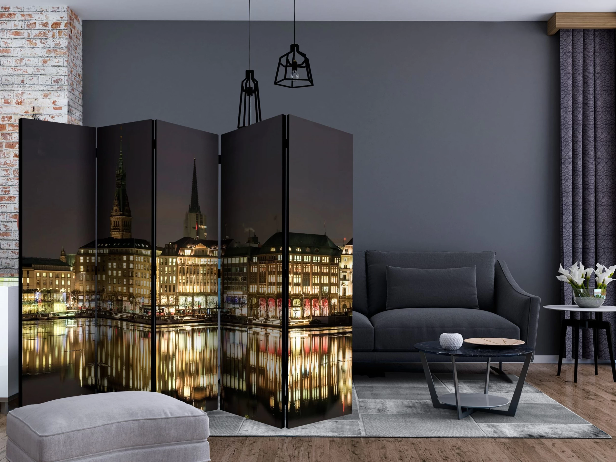 Dekoratives Paravent „Night in Hamburg II [Room Dividers]“ ist ein besonderes Schmuckstück für die modernen Inneräume. 5-teilig, hergestellt aus Holz und beidseitig bedrucktes Paravent teilt nicht nur diskret den Raum sonder kreiert auch in dem Raum ein fabelhaftes Arrangement. Perfekte Herstellung sowie originelle Motive in der Full HD Druckqualität verursachen, dass die Zimmerparavents jedem Raum einen einmaligen Charme verleihen. Die dekorativen Paravents für die Wohnung, dass ist mit Sicherheit eine originelle Idee für die Dekoration des Innenraumes. Es lohnt sich ihre praktische Anwendung zu erwähnen – die Zimmerparavents kann man z.B. zwecks der Kachierung des Wäschetrockners nutzen. Das Paravent ist eine sehr originelle Dekoration von Räumen, die man nutzen kann, sowohl in der Wohnung wie auch in einem Atelier z.B. im Friseursalon, Arztpraxis oder im Buchhaltungsbüro. Dekoratives Paravent bewährt sich ideal als:Als Zimmerparavent und ein dekoratives Möbelstück, dass den großen Salon vom Speisezimmer und Küche trenntIn einer Ein-Zimmer-Wohnung, in dem es den Tagesraum vom Schlafzimmer trenntAls Paravent für das Schlafzimmer, in dem es z.B. die Kleingarderobe heraustrenntIn Boutiquen und Kosmetiksalons, als orignelles Arrangement und Umkleideraum in Einem!Im gemeinsamen Geschwisterzimmer, als diskrete Trennwand für den RaumIn grossen Wohnungen und Lofts Technische Daten: