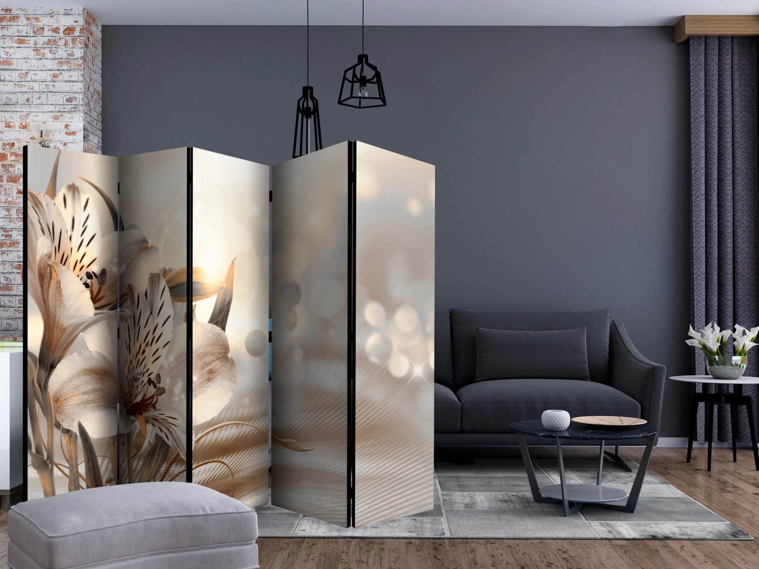 Dekoratives Paravent „Princesses of the Morning II [Room Dividers]“ ist ein besonderes Schmuckstück für die modernen Inneräume. 5-teilig, hergestellt aus Holz und beidseitig bedrucktes Paravent teilt nicht nur diskret den Raum sonder kreiert auch in dem Raum ein fabelhaftes Arrangement. Perfekte Herstellung sowie originelle Motive in der Full HD Druckqualität verursachen, dass die Zimmerparavents jedem Raum einen einmaligen Charme verleihen. Die dekorativen Paravents für die Wohnung, dass ist mit Sicherheit eine originelle Idee für die Dekoration des Innenraumes. Es lohnt sich ihre praktische Anwendung zu erwähnen – die Zimmerparavents kann man z.B. zwecks der Kachierung des Wäschetrockners nutzen. Das Paravent ist eine sehr originelle Dekoration von Räumen, die man nutzen kann, sowohl in der Wohnung wie auch in einem Atelier z.B. im Friseursalon, Arztpraxis oder im Buchhaltungsbüro. Dekoratives Paravent bewährt sich ideal als:Als Zimmerparavent und ein dekoratives Möbelstück, dass den großen Salon vom Speisezimmer und Küche trenntIn einer Ein-Zimmer-Wohnung, in dem es den Tagesraum vom Schlafzimmer trenntAls Paravent für das Schlafzimmer, in dem es z.B. die Kleingarderobe heraustrenntIn Boutiquen und Kosmetiksalons, als orignelles Arrangement und Umkleideraum in Einem!Im gemeinsamen Geschwisterzimmer, als diskrete Trennwand für den RaumIn grossen Wohnungen und Lofts Technische Daten: