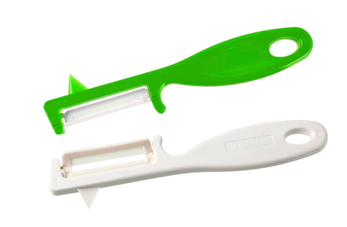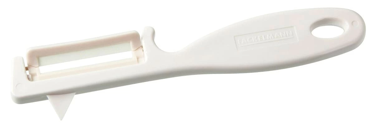 Schnelles Schälen von Obst und Gemüse ist mit dem Pendelschäler von Fackelmann kein Problem mehr. Mit seiner beweglichen Klinge passt er sich dem Schälgut optimal an. Außerdem verfügt er über eine lange Schnitthaltigkeit und eignet sich auch sehr gut zum Ausstechen unschöner Stellen am Gemüse. Nach der Verwendung kann der Schäler einfach in der Spülmaschine gereinigt werden.