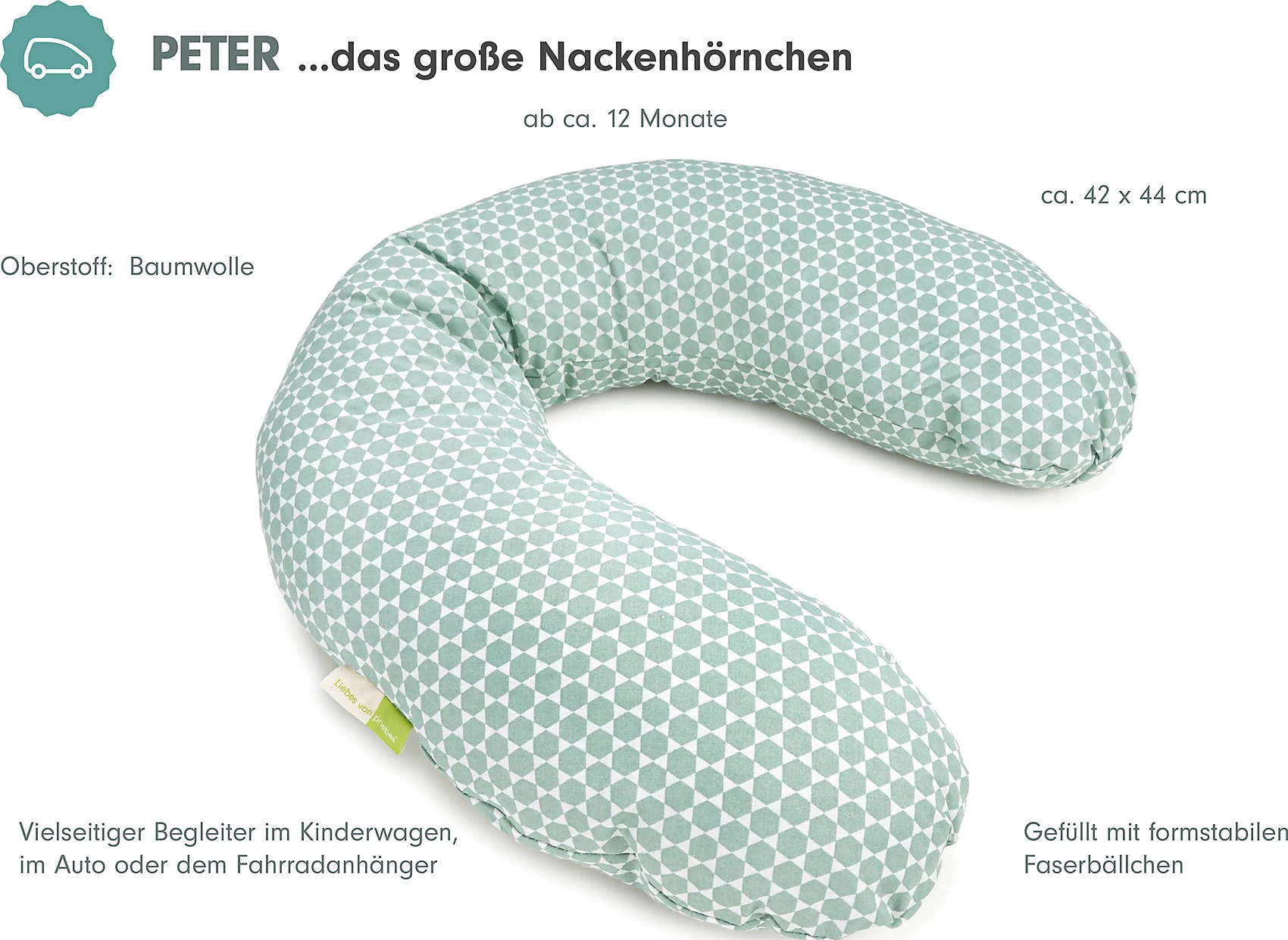 Die große Nackenrolle PETER von priebes ist ein treuer Freund: das vielseitige und kuschelige Modell begleitet Kinder und Erwachsene unterwegs. Es entlastet den Nacken und sorgt so für einen entspannten Schlaf.