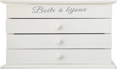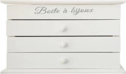 Der Schminktisch für Frauen kann ohne eine geeignete Schmuckschatulle und geliebte Schmuckstücke nicht existieren. Darin können Sie all Ihre Schmuckstücke sowie kleine Geheimnisse aussortieren. Drei geräumige Schubladen für angemessen verteilte Ketten, Uhren und Ketten, die sich nie wieder verheddern werden. Über ihnen ist eine zarte, stilvolle Dekoration. Die Oberseite der Box ist eine horizontale Vitrine, die in drei gleiche Abschnitte unterteilt ist – Sie können Ohrringe, Anhänger, Ringe oder was Sie besonders gerne aufbewahren, da der Deckel teilweise aus Glas besteht. Diese Kassette wird sicherlich jeder Frau von einem kleinen Mädchen bis zu einer reifen Dame gefallen. Auf wundersame Weise wird es auf einem Schminktisch oder auf einer Kommode im Schlafzimmer präsentiert. Es ergänzt Ihr Interieur mit einem femininen Accessoire und hilft Ihnen, Ihre Schätze sicher zu verstauen.