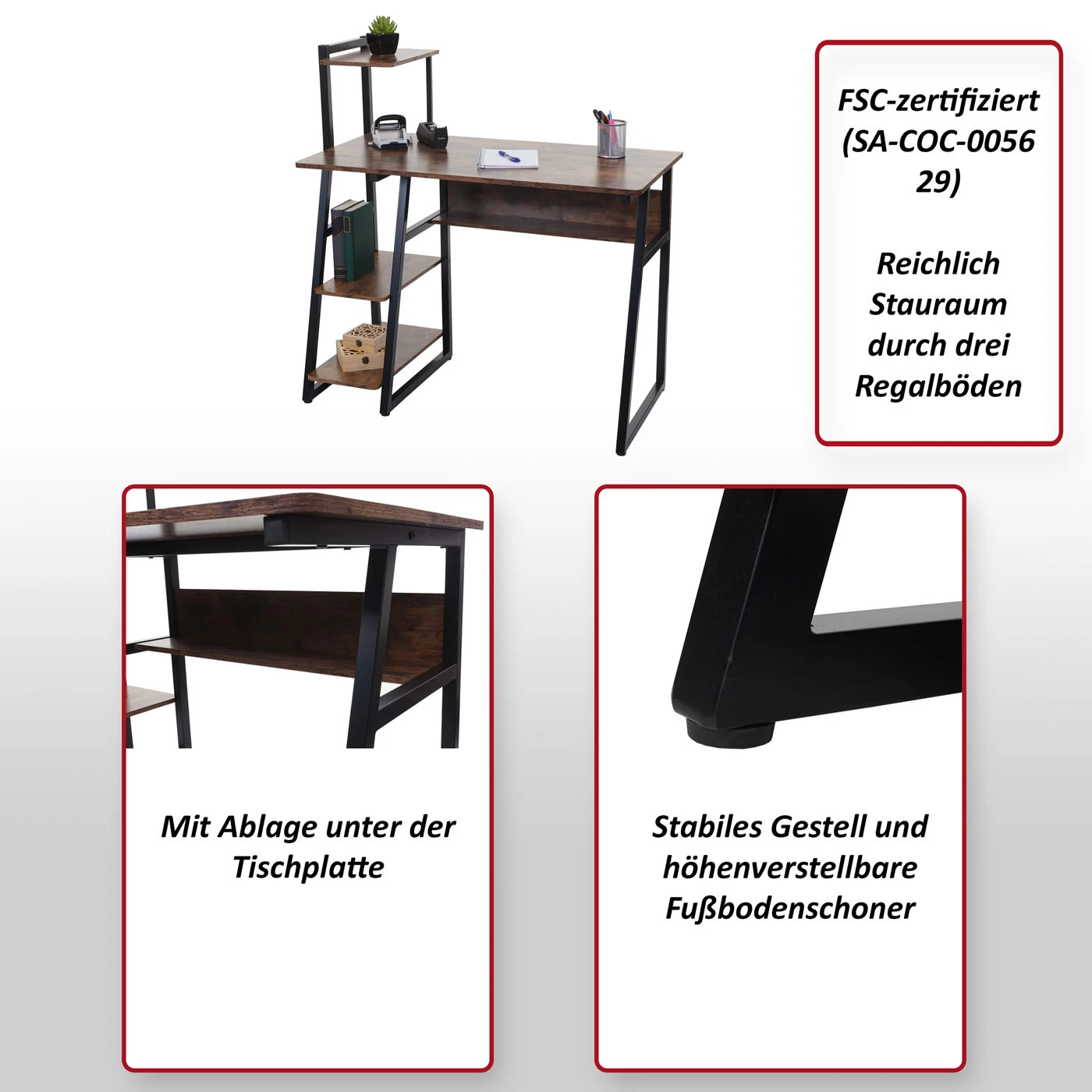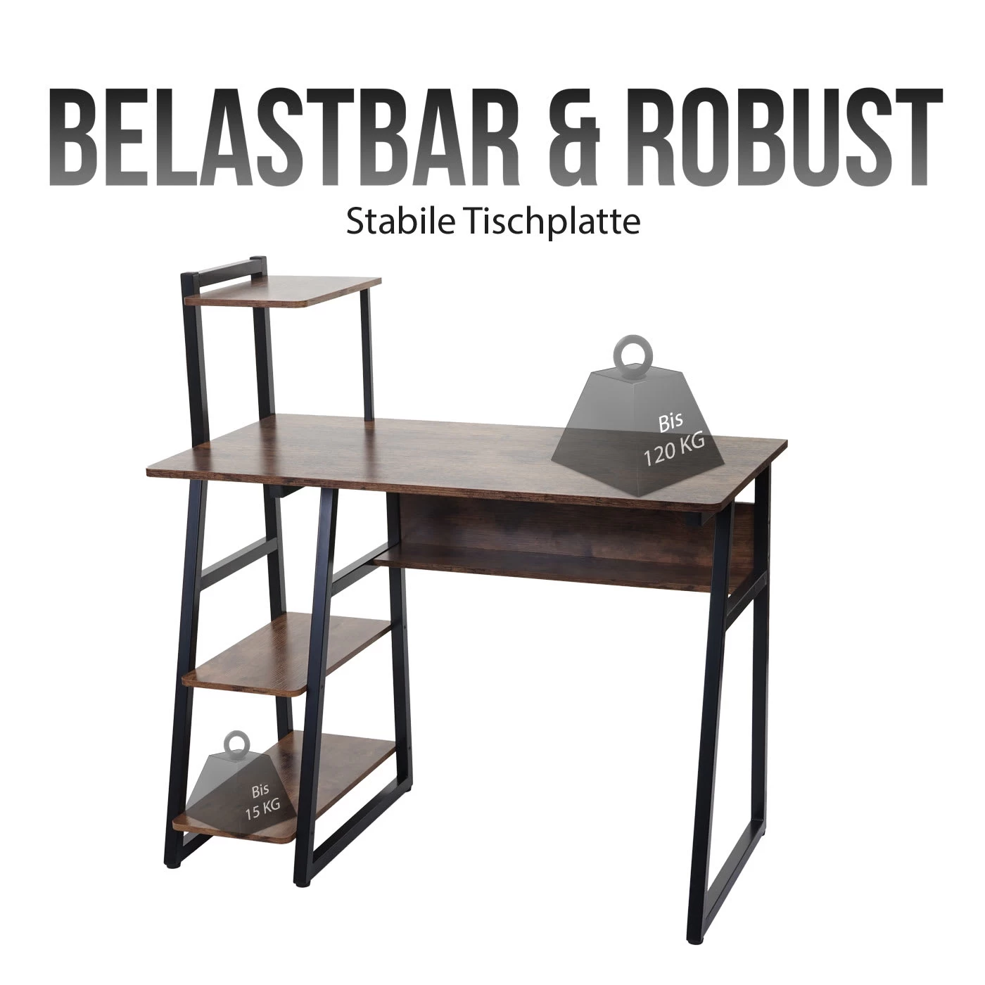 Schreibtische gibt es in allerlei verschiedenen Formen, Farben und Größen und doch haben sie alle etwas gemeinsam: sie schaffen eine Atmosphäre, in der es Ihnen möglich ist Ihrer Produktivität und Kreativität freien Lauf zu lassen! Was wäre hierzu besser geeignet als ein Schreibtisch, der sich ganz nach Ihren individuellen Anforderungen und Bedürfnissen anpassen lässt? Dieser praktische Arbeitstisch mit seinem modernen Erscheinungsbild ist die ideale Ergänzung zu Ihrem Arbeitszimmer oder Wohnzimmer. Dank der vielen Staumöglichkeiten durch das zusätzliche Regal muss man sich keine Sorgen machen über zu wenig Platz am Schreibtisch. Durch das zeitlose und moderne Design fügt sich dieses Möbelstück dekorativ in die verschiedensten Einrichtungsstile ein.