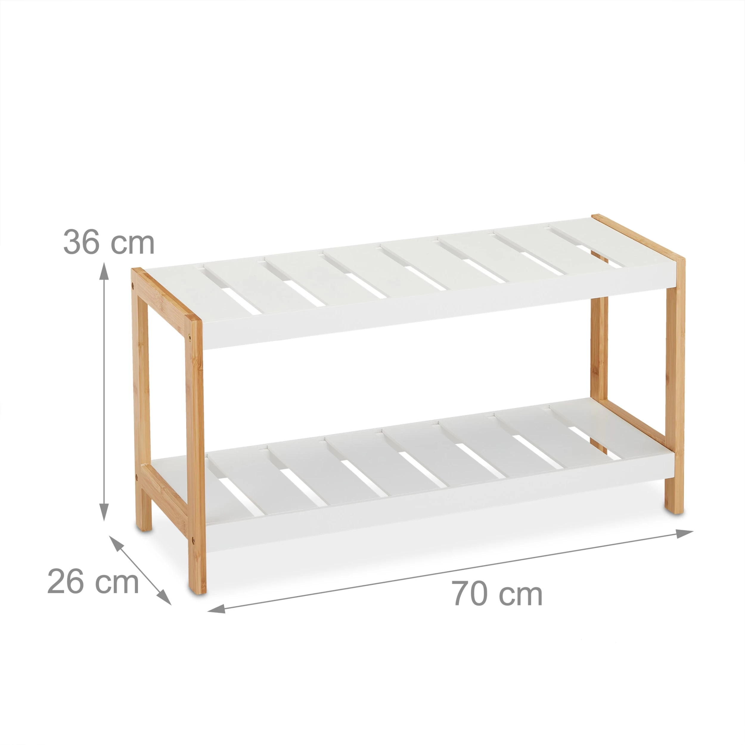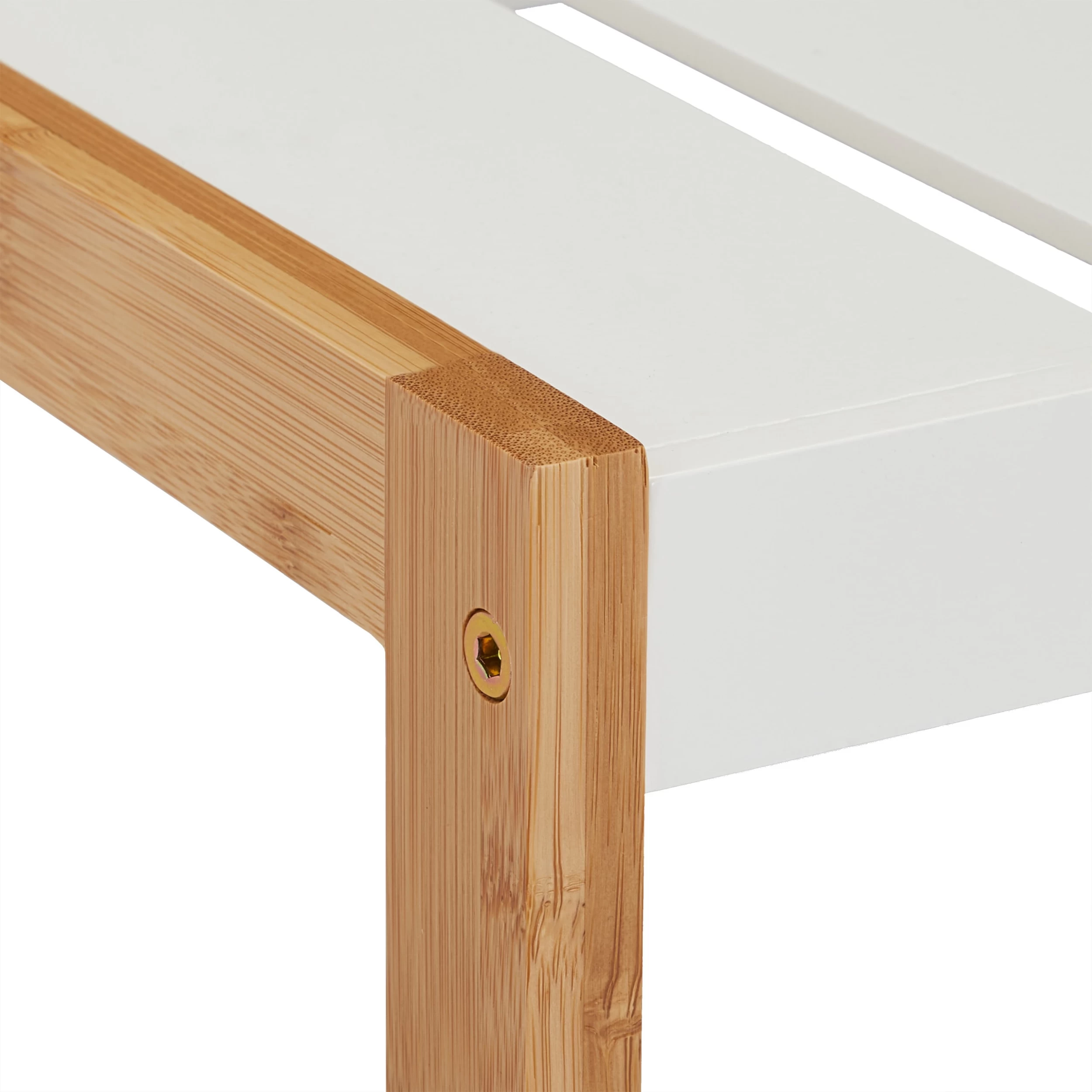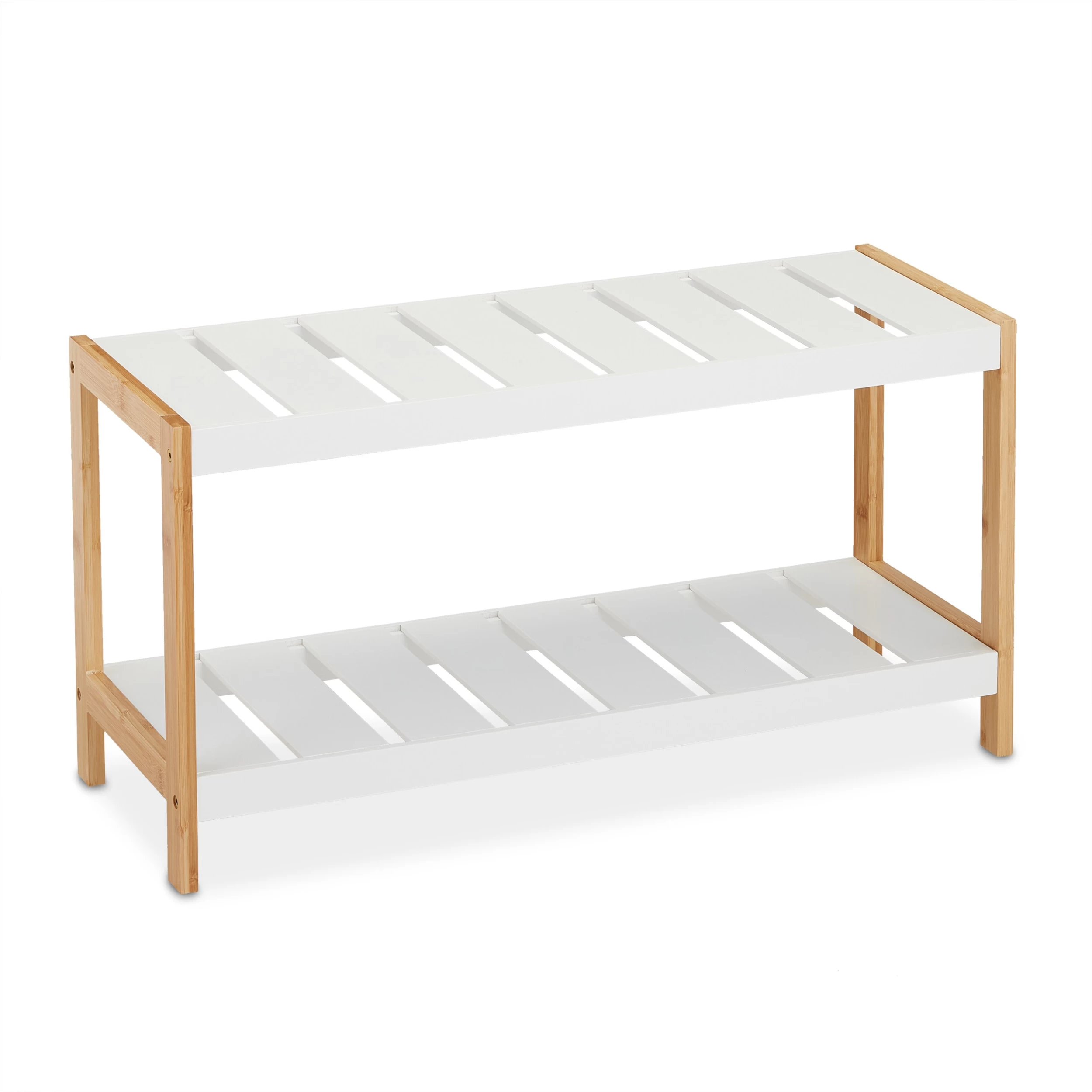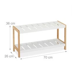 Das niedrige Schuhregal ist die ideale Lösung für kleine Flure und Dielen. Damit bietet Dir der Schuhständer aus Bambus und MDF eine stabile und platzsparende Lagerung für Deine Schuhe, Sneaker und Stiefel. Die geradlinige Schuhablage in aufhellenden Weiß fügt sich ohne Probleme in jeden Einrichtungsstil. Der naturfarbene Rahmen verleiht dem Sneakerständer einen tollen Kontrast. Das offene Design ermöglicht Dir einen schnellen Überblick und einfachen Zugang zu deinen Lieblingsschuhen.