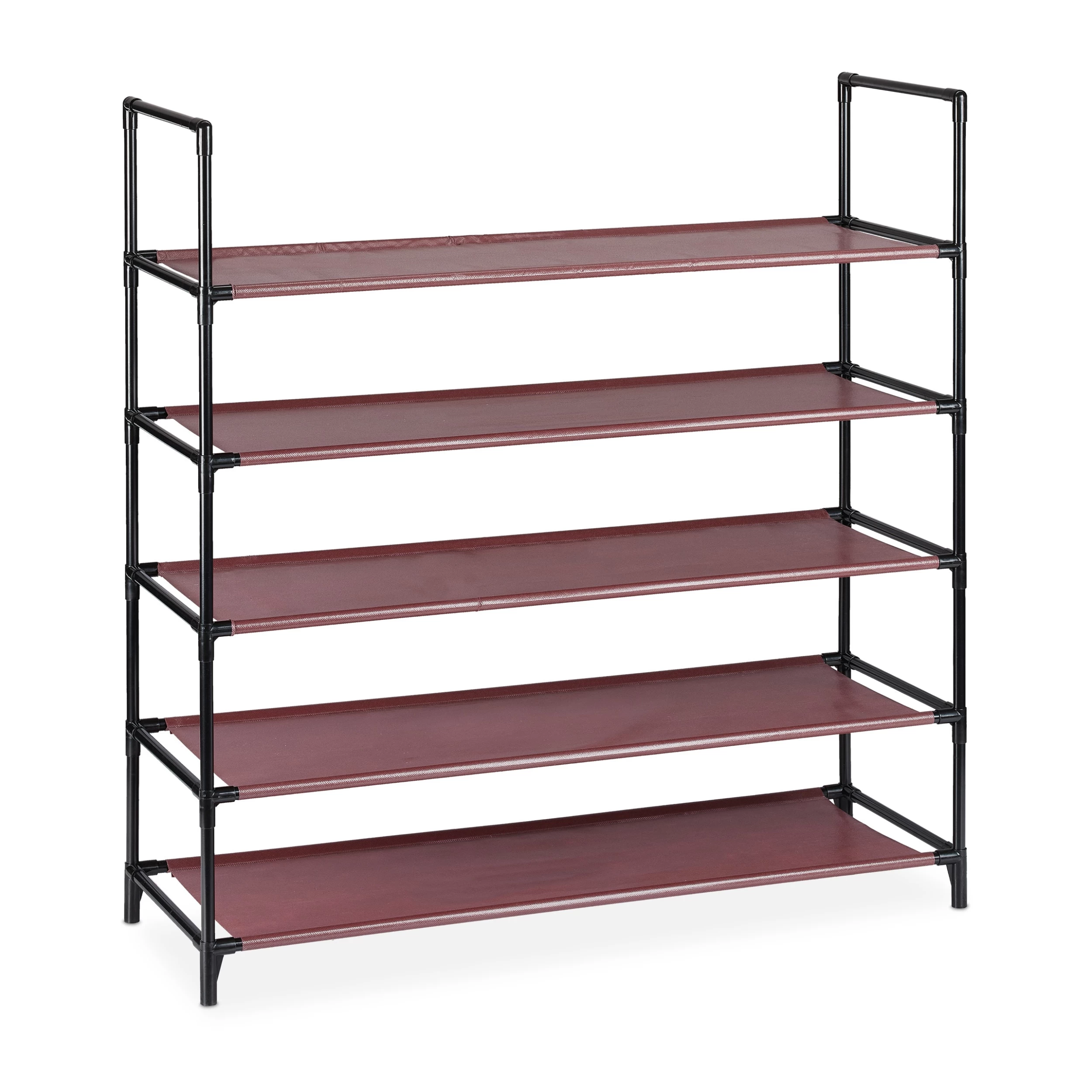 Die hohe XL Schuhablage bietet idealen Stauraum für den Flur oder das Treppenhaus. Auf den 5 breiten Ablagen aus Vlies können insgesamt – je nach Größe – bis zu 20 Paar Schuhe abgestellt werden. Das XL Stecksystem Schuhregal ist offen und minimalistisch gehalten. Dank des Metall-Gestells ist es sehr solide. Der Aufbau geht durch das simple Stecksystem leicht von der Hand. Die Konstruktion kann nach Belieben angepasst werden – je nach Ihren Wünschen lässt sich die Höhe auch reduzieren.