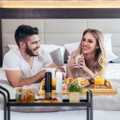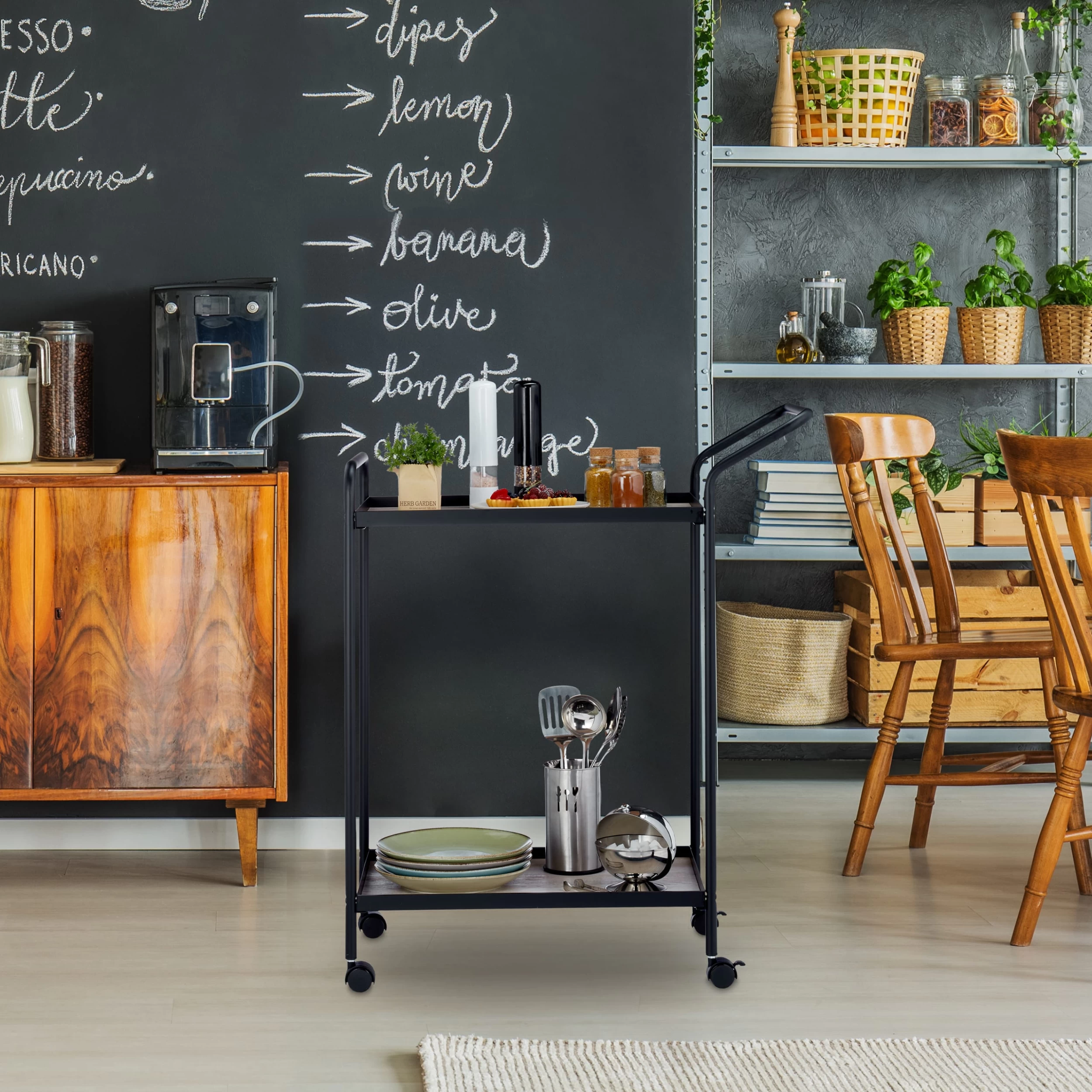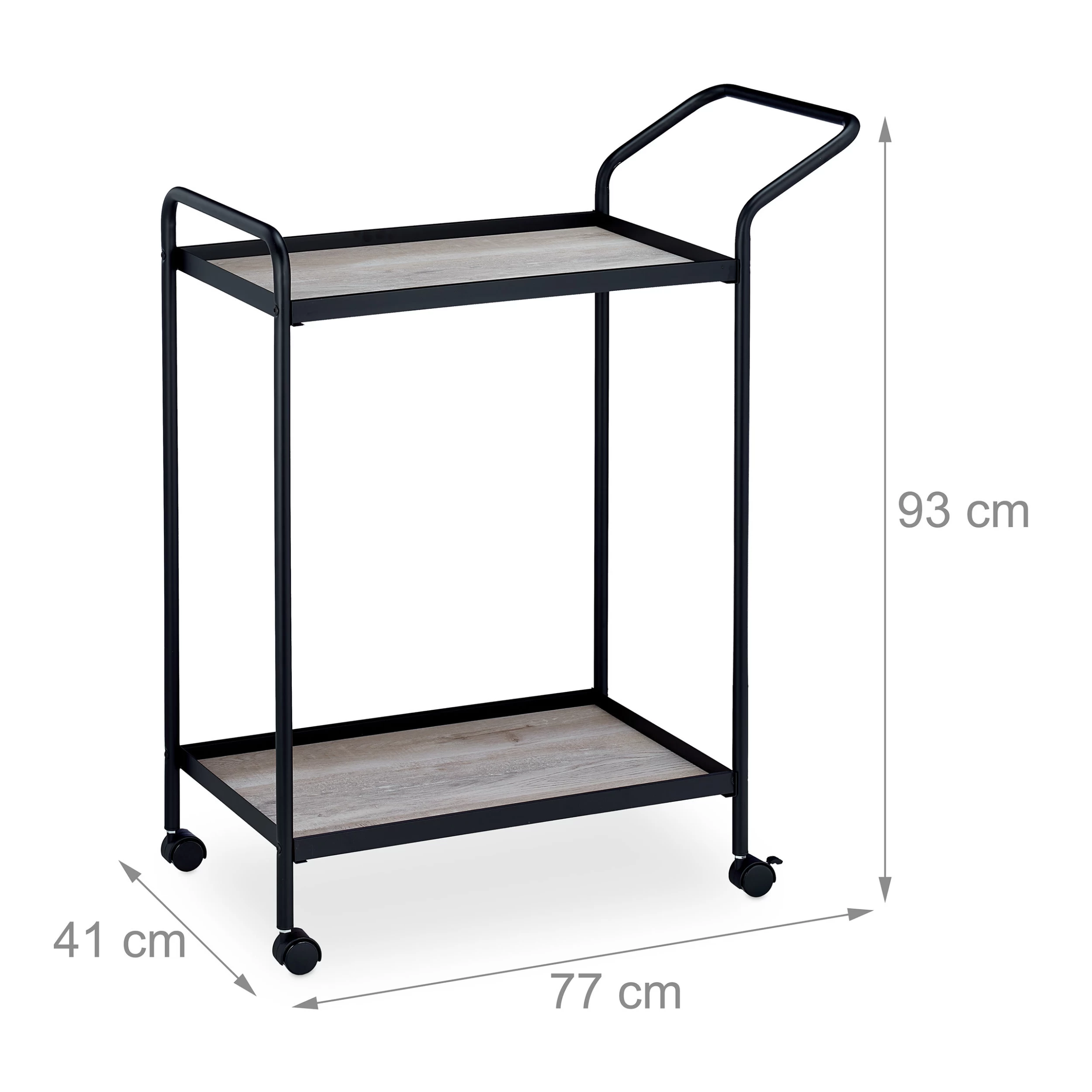 Ob Frühstück im Bett oder Brunch mit Freunden, dieser Küchenrollwagen bietet dank zwei geräumigen Ablagen viel Platz für den Transport von Geschirr und Besteck sowie Speisen und Getränken. Dabei sorgen die 360° drehbaren Rollen und der Griff für einen angenehmen und flexiblen Transport des Teewagens. Feststellbremsen an den vorderen Rollen ermöglichen einen sicheren und stabilen Halt des Getränkewagens. Auch für Deko, Pflanzen oder andere Gegenstände kann der stilvolle Rollwagen verwendet werden.