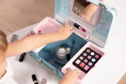Für angehende Stylist*innen: der coole „My Beauty“-Kosmetikkoffer von Smoby! Das praktische Köfferchen sieht einfach klasse aus, ist mit einem Tragegriff und zwei Verschlussriegeln ausgestattet und ist mit dreizehn Zubehörteilen befüllt. Hier sind Nagellacke, Lippenstifte, eine Lidschatten-Palette, Wimperntusche, eine Bürste, ein Kamm, ein Haarreif, ein Ring und verschiedene Fläschchen mit dabei. Die unechten Spielkosmetika eignen sich klasse, um verschiedene Looks und Frisuren an sich selbst oder der Lieblingspuppe auszuprobieren.