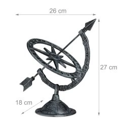 Seit jeher bestimmt die Sonne unseren Tagesrhythmus und beeinflusst wann wir aktiv sind, wann wir schlafen und wann wir aufstehen. Von der Antike bis ins 19. Jahrhundert konnte die Uhrzeit ausschließlich mit Hilfe von Sonnenuhren bestimmt werden. Machen Sie einen Ausflug in die Vergangenheit mit dieser dekorativen Sonnenuhr für den Garten. Die Gartensonnenuhr besteht komplett aus Gusseisen und ist auf einem runden Standfuß in Form einer halben Weltkugel befestigt.