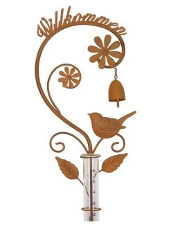 Metalldeko in trendigem Rostdesign, herausnehmbarer Messbecher aus Glas mit Skala