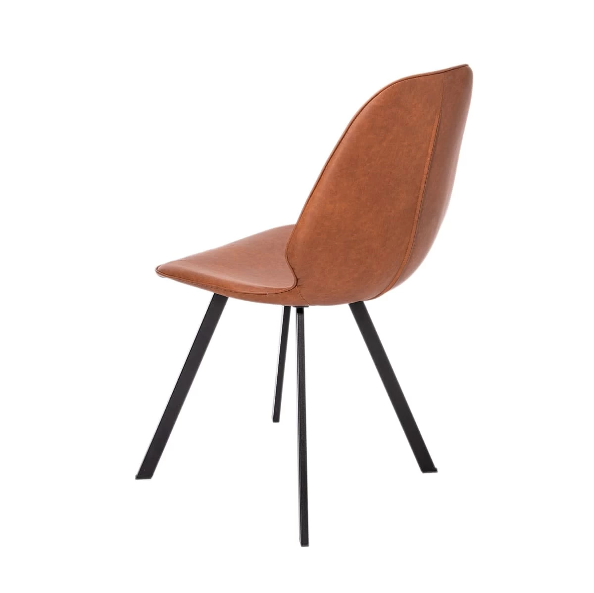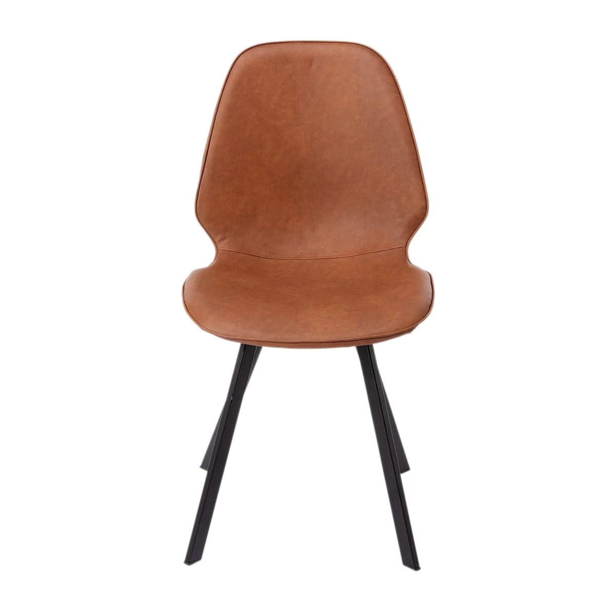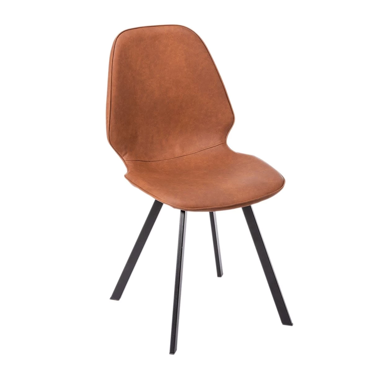 Vielseitig einsetzbarer Stuhl in hellbrauner Lederoptik mit mattschwarzen Beinen.