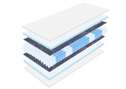 Taschenfederkernmatratze Köln, Härtegrad 5. Diese komfortable Matratze Köln ist insgesamt 20cm hoch. Der Taschenfederkern ist mit 7 Zonen angefertigt und bietet so für jede Körperpartie eine angepasste Nachgiebigkeit. Wir bieten Ihnen hier eine moderne und preiswerte Matratze, die dennoch alle Anforderungen an den Schlafkomfort erfüllen kann. Der Taschenfedekrern besteht aus 480 Qualitätsfedern 8 (in der Göße 100x200cm), die in kleinen, miteinander verbundenen Taschen stecken. Dadurch ergibt sich die besonders gute Punktelastizität. Die Liegefläche gibt nur da nach, wo sie belastet wird. Eine hochwertige Kaltschaumschicht bildet das Polster und sorgt für das softe Liegegefühl. Die Taschenfederkernmatratze Köln überzeugt mit der hohen Punktelastizität und der ausgezeichneten Körperanpassung. Den Kern bei dieser Taschenfederkernmatratze schützt eie Doppeltuchbezug, der beidseitig mit Klimafaser versteppt ist. Ein gesundes Bettklima ist also gewährleistet. Der Bezug kann durch einen Reißverschluss einfach abgenommen und bis zu 60°C in der Maschine gewaschen werden. Die Taschenfederkernmatratze Köln ist eine preiswerte Allroundmatratze mit sehr guten Liegekomfort.