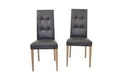 Die vier Polsterstühle haben ein stabiles Gestell aus Massivholz Buche, eichefarben gebeizt und lackiert. Sitz und Rücken sind bequem schaumstoffgepolstert und mit einem Kunstlederbezug (100% Polyvinylchlorid), bezogen. Belastbarkeit je Stuhl ca. 115 kg.