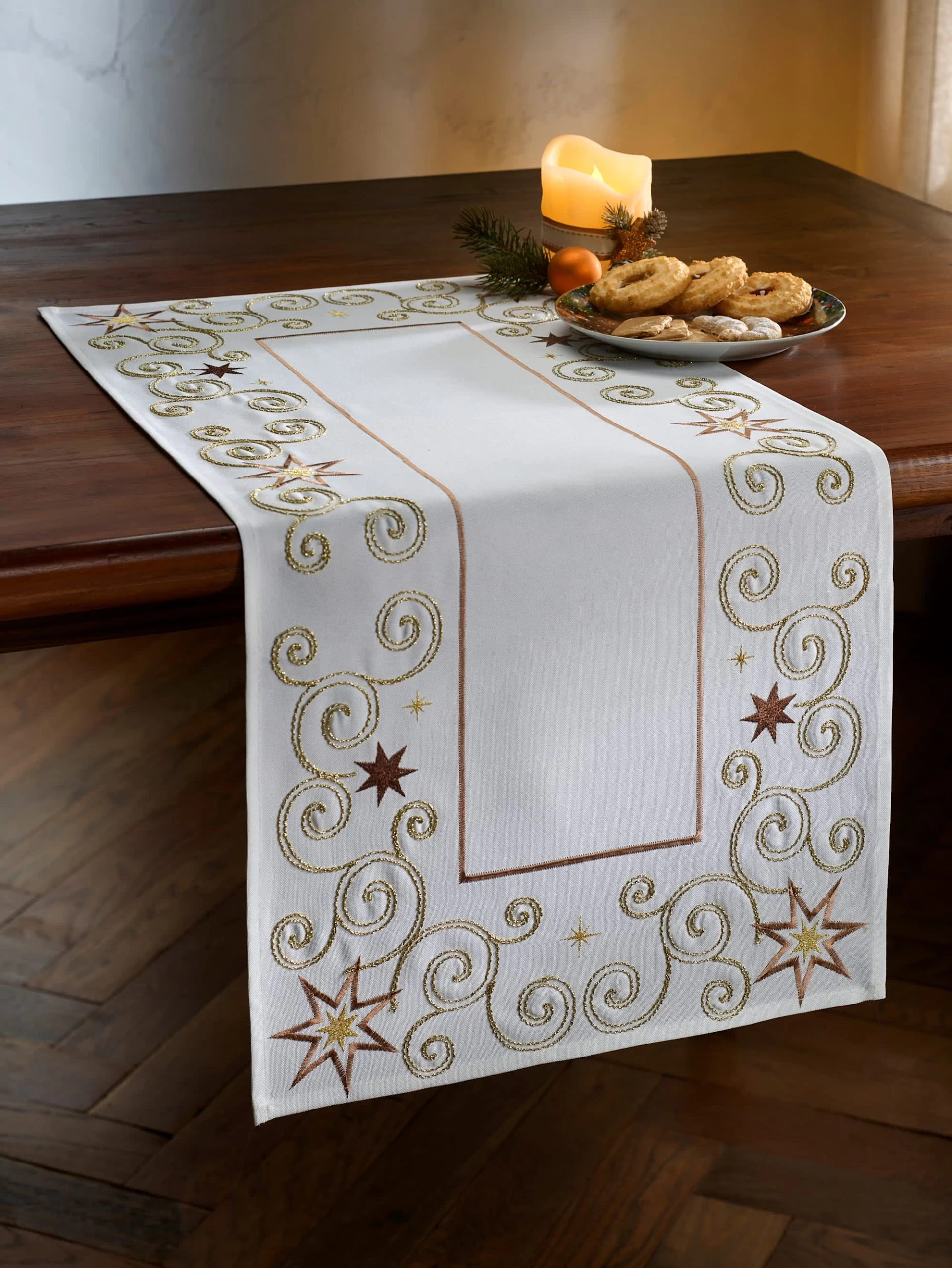 – Attraktive Weihnachtsdecke mit bezaubernder Sternenstickere