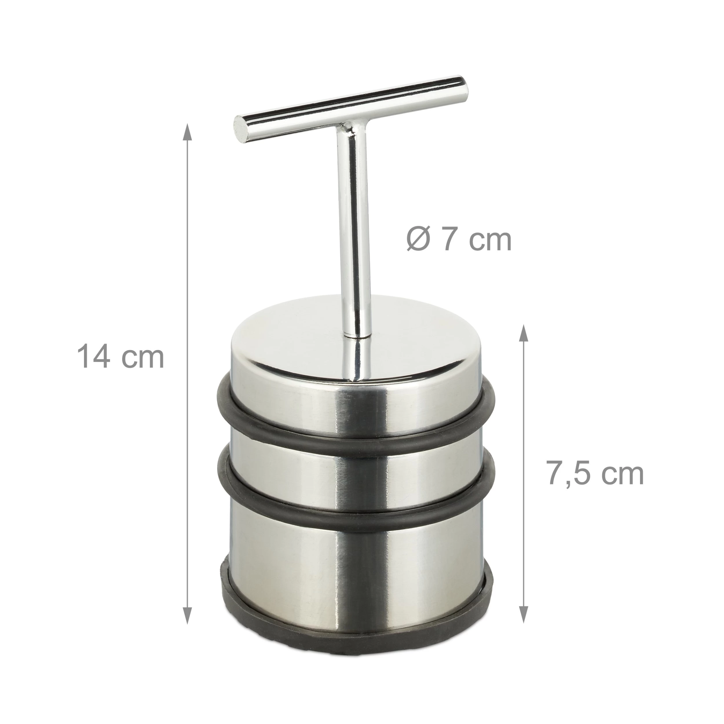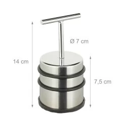 Der Türstopper aus Edelstahl ist der ideale Helfer für zu Hause. Er verhindert das unbeabsichtigte An- und Zuschlagen von Türen und Fenstern. Der praktische Griff hilft beim freien Positionieren in der Wohnung. Durch die massive und schwere Fertigung hat der Stopper einen festen Stand. Die gummierte Unterseite behindert das Verrutschen auf glatten Bodenbelägen. Zusätzlich verhindern zwei Gummiringe unschöne Abdrücke und Kratzer auf Möbeln, Türen oder Fenstern.