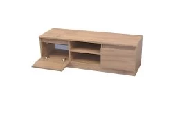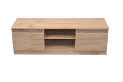 Modernes, praktisches TV-/Phonomöbel komplett aus Holzwerkstoff gefertigt und mit einem trendigen Holzdekor, wahlweise in 5 Farben, beschichtet. Rechts/links jeweils eine Klappe, dahinter Stauraum. Mitte offenes Fach mit festen Boden. Lieferung erfolgt zur Selbstmontage, inklusive Montageanleitung. Maße ca. cm: (B/H/T) 120/37/41. Stauraum hinter den Klappen ca. cm: (B/H/T) 36/21/38. Maße der offenen Fächer 39/12,5/36. Ohne Dekoration. Ohne TV.