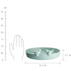 Splish splash: Sie laden Spatzen, Amseln, Rotkehlchen & Co. zu sich zum Plantschen ein mit dem Birds Place Vogelbad. Die dekorative Schale mit den zwei hübschen Vogelfiguren aus Dolomit in Salbei findet Platz auf Ihrem Balkon, einem breiten Fensterbrett oder auf Ihrer Terrasse. Am besten täglich mit Frischwasser auffüllen, und schon bald freuen Sie sich regelmäßig über gefiederten Besuch.