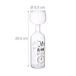 It’s wine o’clock! Mit diesem witzigen Weinflaschenglas bekommen sie Glas und Flasche in einem. In das XL-Weinglas können Sie eine gesamte 750ml-Weinflasche einschenken. So sparen Sie sich das Nachgießen und bleiben stets dem Vorsatz „Nur ein Gläschen am Abend“ treu. Das Flaschenglas ist das perfekte Geschenk für Weinliebhaber und sorgt garantiert für Erheiterung beim Beschenkten. Natürlich lässt sich die Weinflasche auch als lustiger Dekanter zum Verteilen von Wein in die Gläser Ihrer Gäste nutzen.