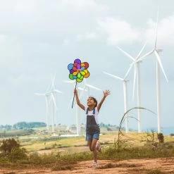 Dieser frühlingshafte Gartenstecker ist die ideale Dekoration, um karge Balkone, graue Terrassen oder einfältige Gärten freundlicher zu gestalten. Einfach ins Beet oder einen Blumentopf gesteckt, ist das regenbogenfarbene Blumen Design ein echter Hingucker. Genießen Sie das prachtvolle Farbenspiel, wenn das Windrad von wehenden Lüften angetrieben wird. An dem Windspiel können sich Kinder und Erwachsene gleichermaßen erfreuen. Nehmen Sie die Windmühle auch mit zum Camping oder an den Strand.
