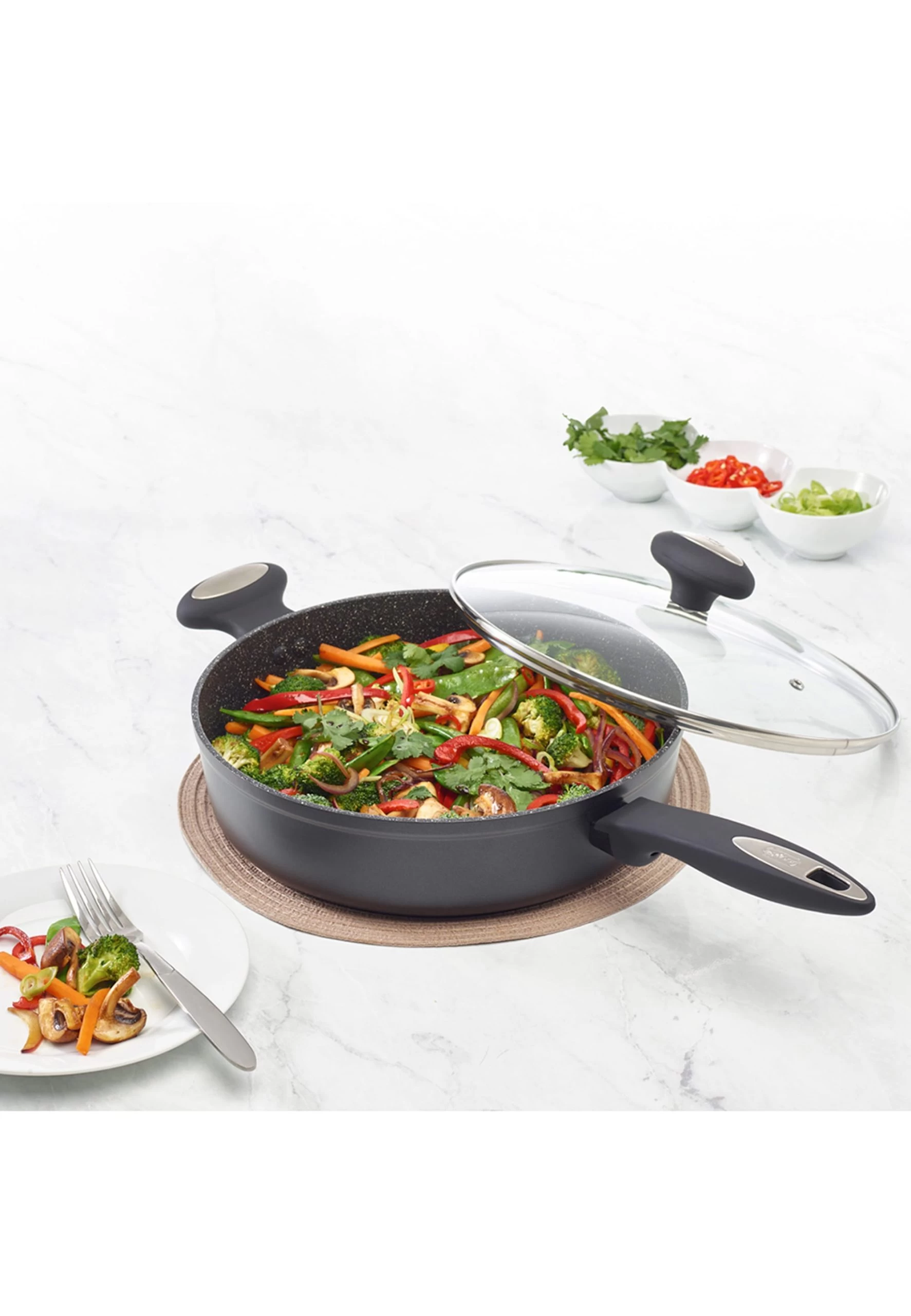 Die ultimative ZYLISS Antihaft-Pfanne 28cm mit Deckel ist mit einer dreifachen Antihaftbeschichtung ausgestattet – für besonders gesundes Kochen und Braten ohne Öl und Butter. Die hervorragenden Antihafteigenschaften basieren auf der revolutionären ROCK-PEARL Antihaft-Technologie von Ilag. Der Granit-Oberflächen-Effekt sorgt für leichtes Lösen und ermöglicht ein besonders gesundes und komfortables Braten. Mit den ergonomischen, hitzebeständigen Soft-Touch-Griffen sorgt die Zyliss Cook-Serie für höchsten Komfort. Nach der Benutzung geben Sie die Pfanne einfach bedenkenlos in die Spülmaschine.
